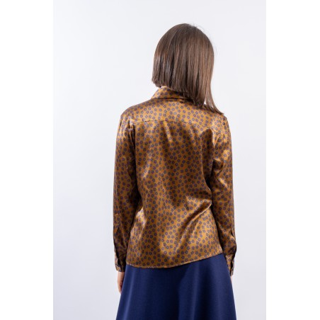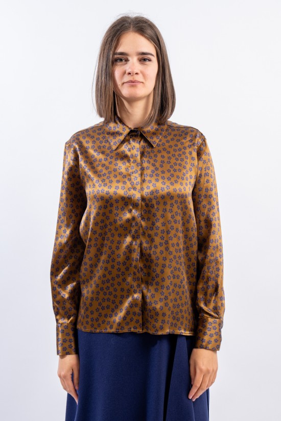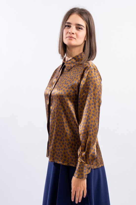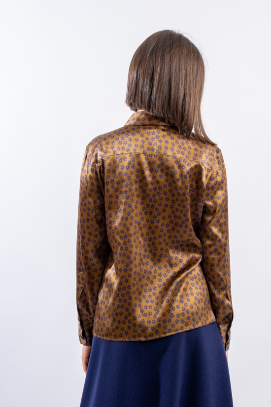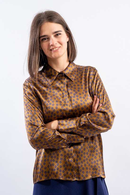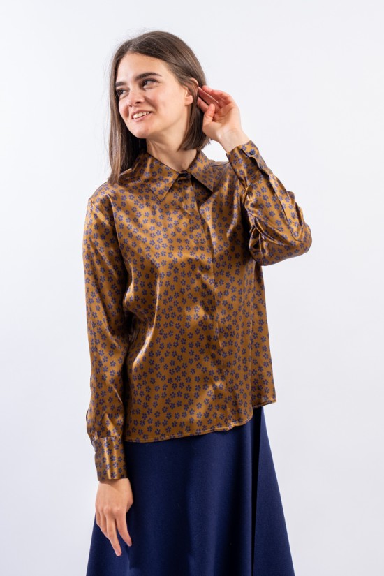 Slim-fit shirt made of stretch silk embellished with a refined micro pattern. It has a shirt collar and closure with rubberized buttons.