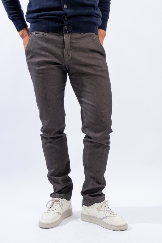 Classic design and slash pocket. Trousers made of cotton and modal blend characterized by a diagonal processing. Soft and comfortable, it is warm and light. Characterized by an everyday elegance and attention to detail typical of Made in Italy signed BRIGLIA.