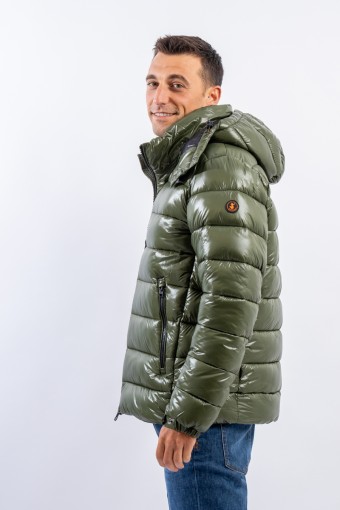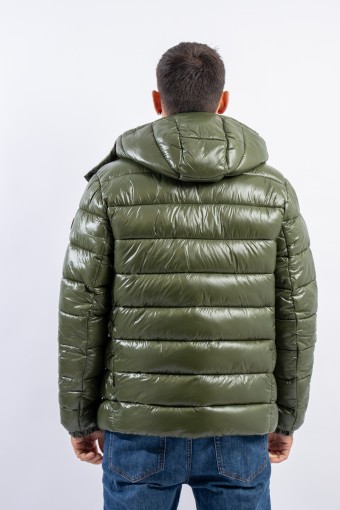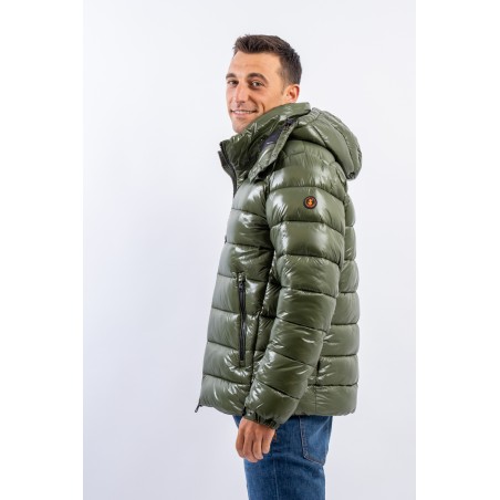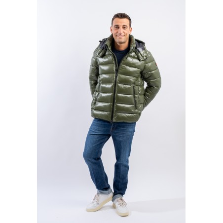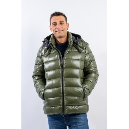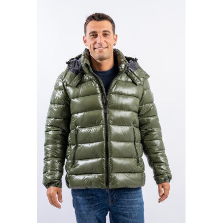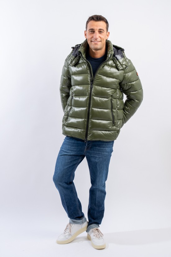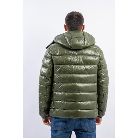 Animal free jacket padded with Plumtech, a warm eco-friendly insulating and breathable padding. Held in channels covered with an iridescent nylon that livens up a classic line characterized by horizontal boudines. The padded hood is easily detachable to adapt the garment to different weather conditions. Stand-up collar for greater protection and elastic cuffs to better retain heat. Regular fit, a comfortable garment perfect for everyday cold winter days.