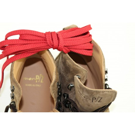 Mon Piz is the brand that takes inspiration from the Alpine peaks, creates handcrafted and 100% Made in Italy its products. Made of soft suede and brushed vintage-effect leather, we offer it in sesame color. Perfect for the mountains thanks to the vibram sole and leather welt, it is also ideal for the city with its elongated and elegant design. Born from the encounter between urban style and mountain classic, MON PIZ is the perfect shoe in all conditions and situations. Every detail encompasses craftsmanship and Italian quality for the new must-have of the present and future winter!