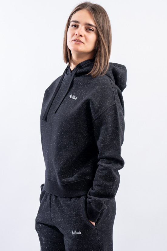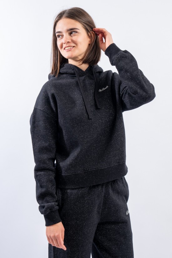 Boxy-cut lurex hooded sweatshirt embellished with embroidered St. Barth lettering. Brushed interior. Perfect to coordinate with jogger trousers with the same texture.