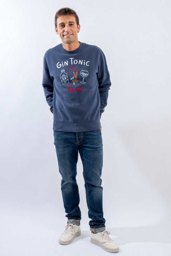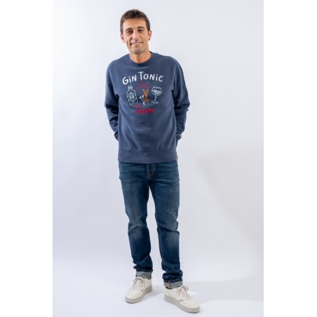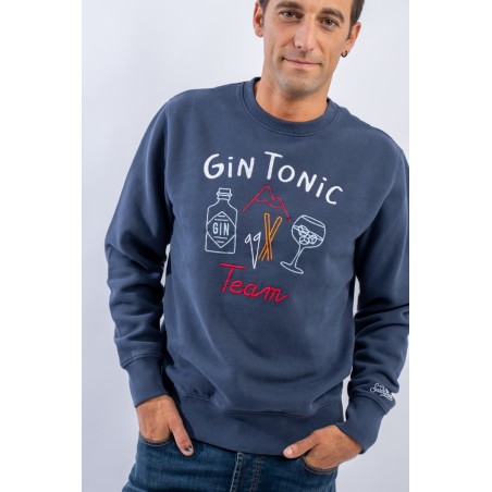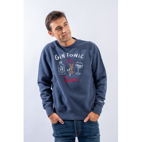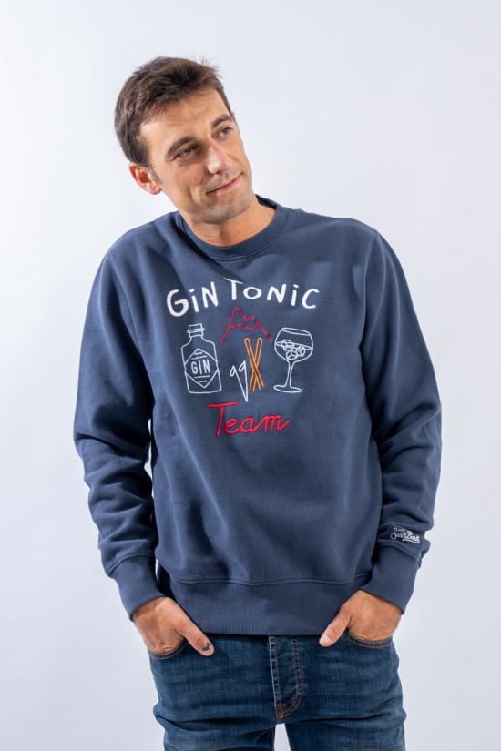 Saint Barth crewneck sweatshirt made of 100% cotton and fleece inside. The classic and essential design is enlivened by the designs and the "gin and tonic team" inscription embroidered on the front. Finished with a ribbed knit on the neckline, cuffs and bottom.