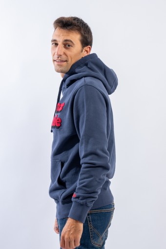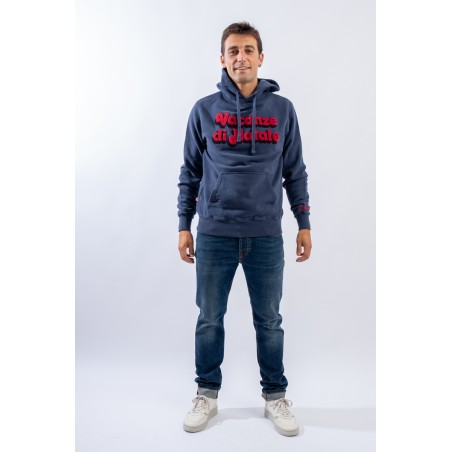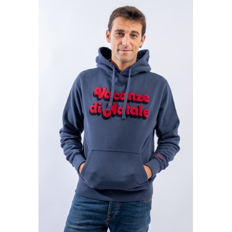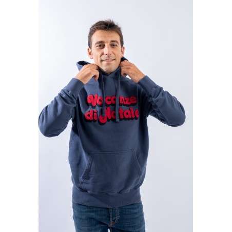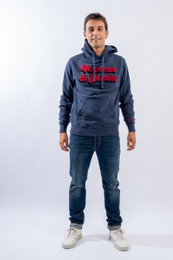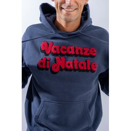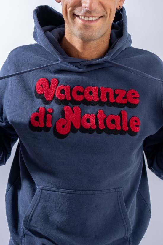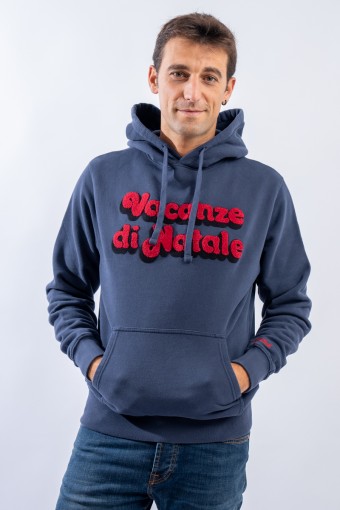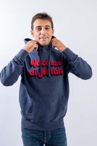Hooded sweatshirt made of 100% cotton and fleece inside. Garment from the limited edition Christmas Holidays collection. The classic design is enlivened by the contrasting writing embroidered on the front with a sponge effect. A large kangaroo pocket on the front, a drawstring hood and elasticated ribbed trim on the cuffs and hem complete the line.