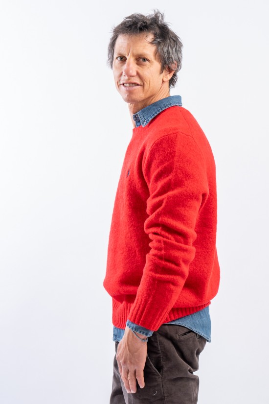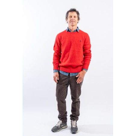 Pullover made of fine wool and alpaca blend yarn with a textured and loose fit. The ribbed finishes give greater structure and grip for an optimal and comfortable fit. The look is completed by the iconic pony embroidered in relief on the chest.