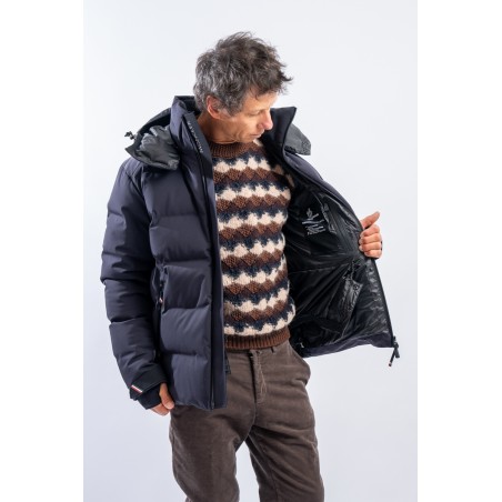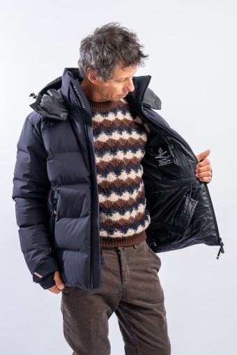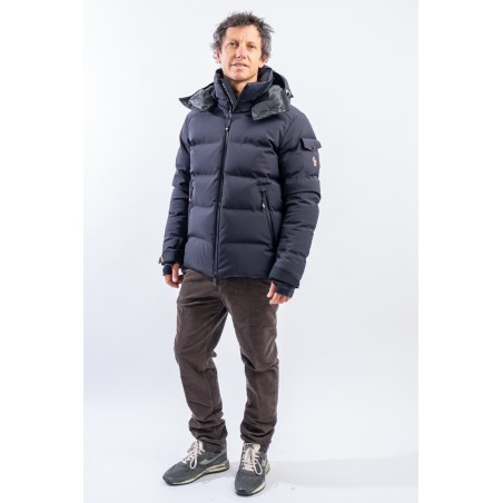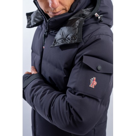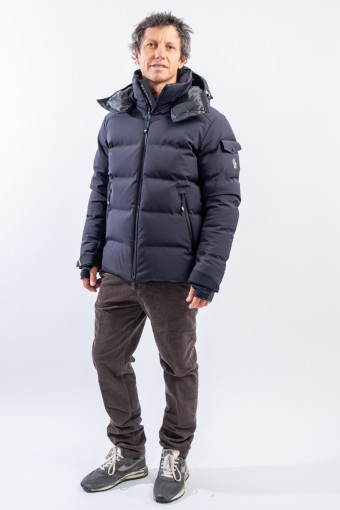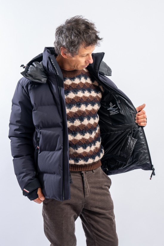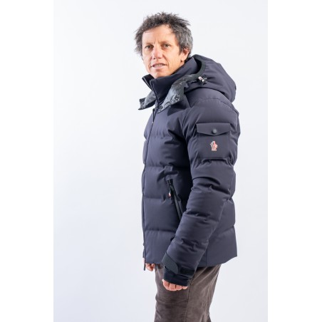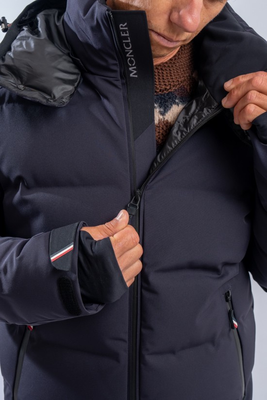 Montgetech is the down jacket designed to achieve maximum performance without sacrificing comfort and style. Made of 2L stretch and resistant nylon and laminated to the breathable technical membrane. The padding in fine 90/10 down guarantees warmth, insulation and lightness of the garment for optimal comfort. The matte look gives the garment that sporty elegance that is essential and typical of MONCLER. Complete with everything you need to better face the snow such as the Water Repellent Look zips or the snow gaiter, it ensures maximum resistance to atmospheric agents even in the most extreme conditions.