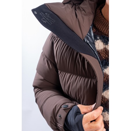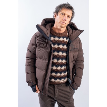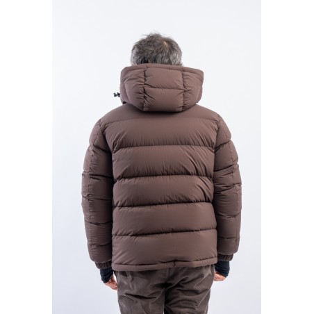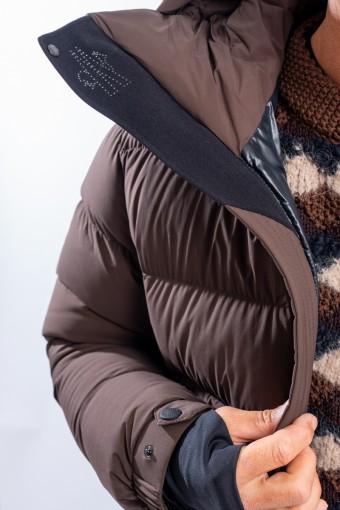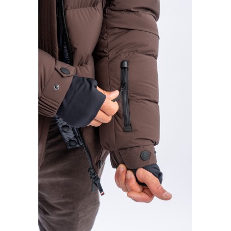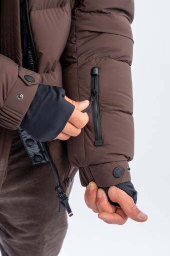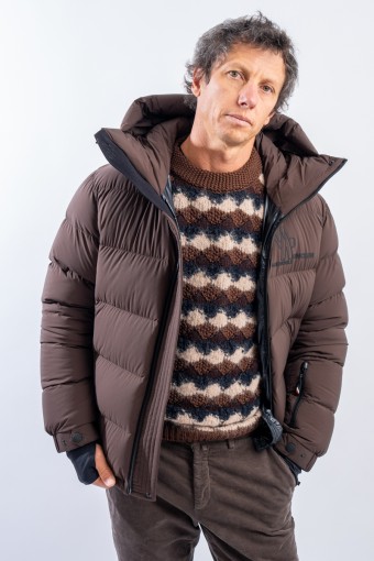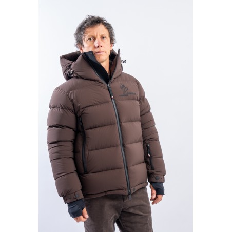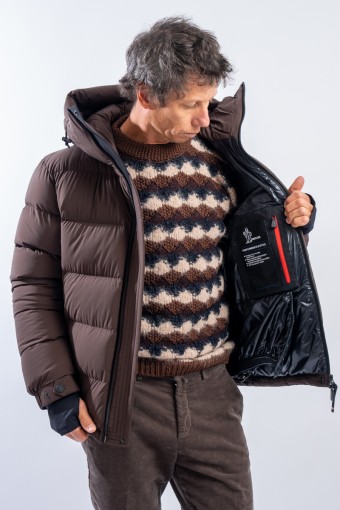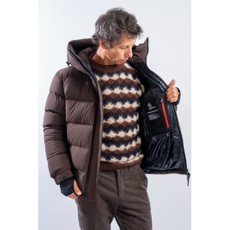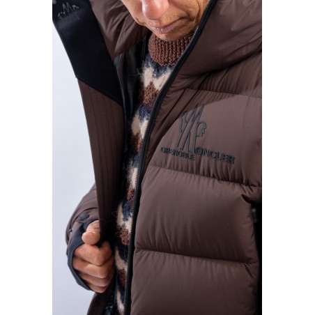 Isorno, the down jacket designed to achieve maximum performance in the Grenoble Performance&style by MONCLER. The laminated limbs to the outer fabric make it water-repellent and breathable. The padding in fine 90/10 down guarantees warmth, insulation and lightness of the garment for optimal comfort. The stretch fabric with a matte look maximizes freedom of movement, giving the garment that sporty elegance typical of MONCLER. Finished with a high collar, a padded and enveloping hood, and Water Repellent look zips, to ensure maximum weather resistance even in the most extreme conditions.
