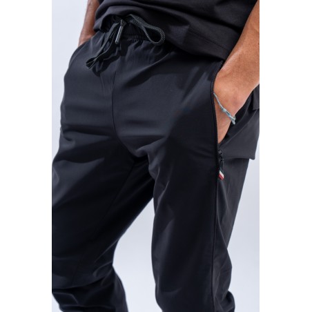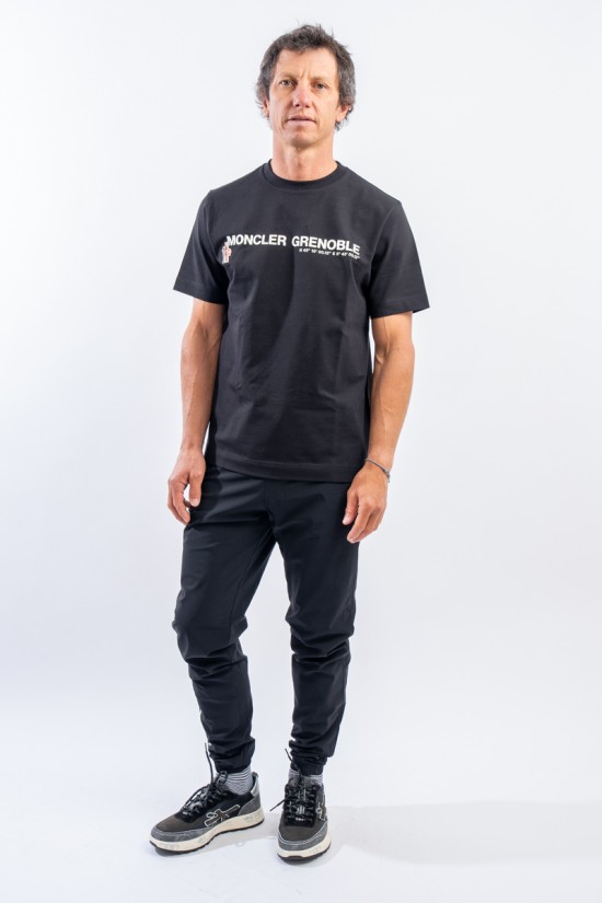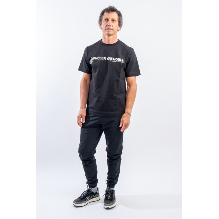Sports trousers made of soft, fresh and lightweight matte nylon. Internally, the perforated lining allows better moisture transport to the outside. Basic look enriched by the rubberized "MONCLER Grenoble" lettering applied on the bottom. The elastic waistband, complete with drawstring, and hem allow a perfect fit for an optimal fit.