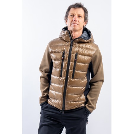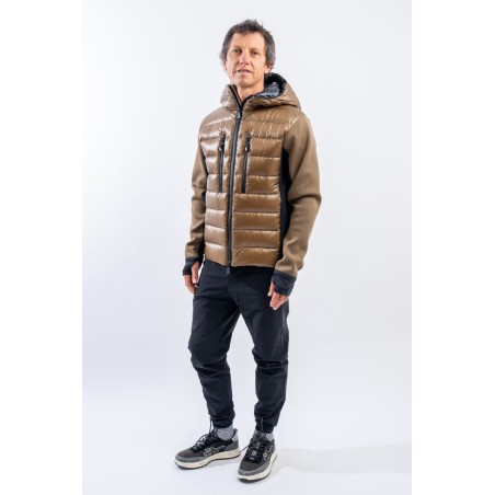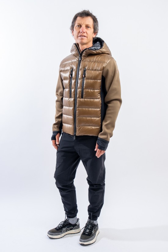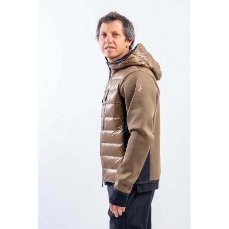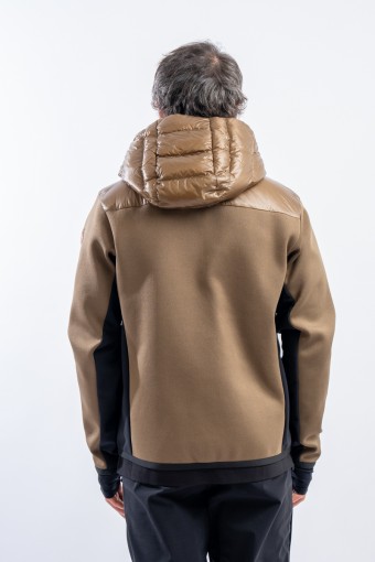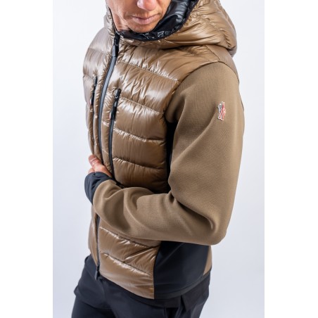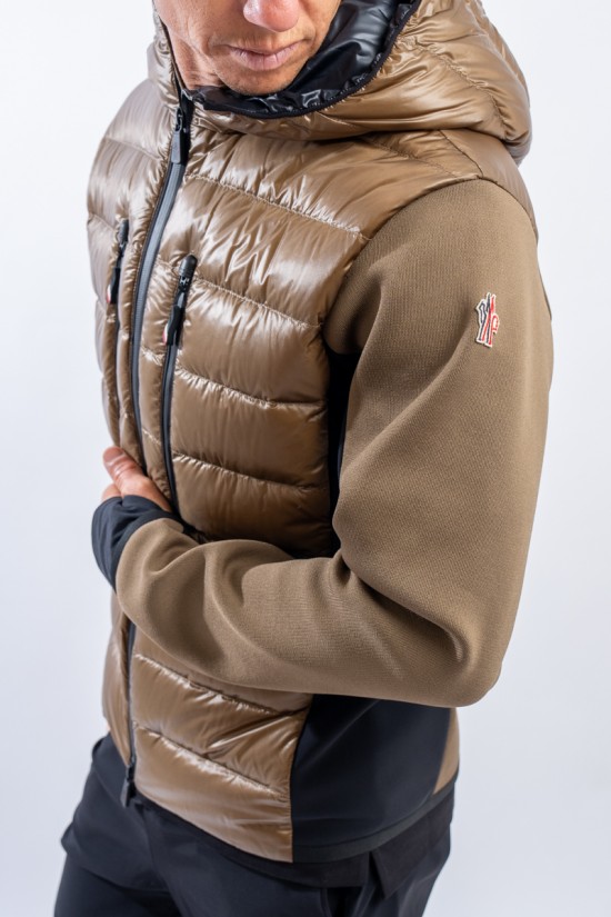 The intermediate cardigan from the Grenoble après-ski collection by MONCLER is characterized by the use of several functional materials. The vanìs polyester gives warmth and breathability, warming in the most exposed points such as the hips. Stretch in 4 directions, it is comfortable and guarantees maximum freedom of movement. The front is padded with down and covered with light semi-shiny nylon enriched with classic boudine quilting. The padded hood and high collar allow perfect protection in the most adverse conditions. A layer made to be comfortable and versatile, designed to face any challenge in the mountains.
