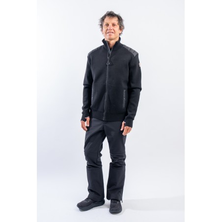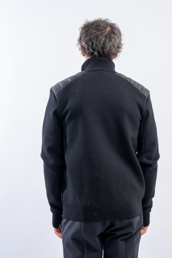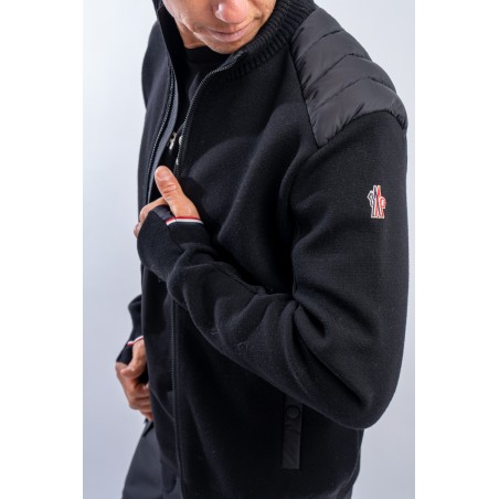 Warm full zip sweater made of knitted wool blend. The essential look is characterized by padded shoulder inserts in matte nylon. The side pockets finished with a nylon flap and a tone-on-tone logo button are further evidence of MONCLER's attention to detail. The cuffs with elastic jersey insert, the high collar and the ribbed hem, allow a better adherence to the body allowing greater protection from the air. Warm and breathable, it's the ideal extra layer on colder days.