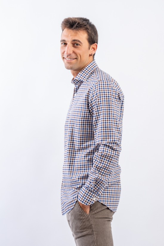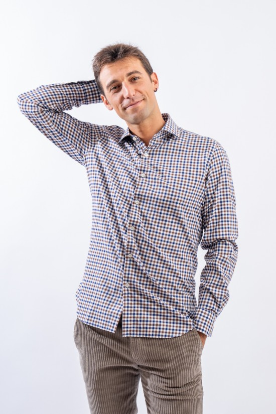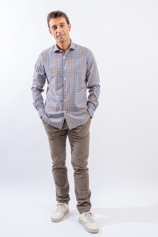 Xacus shirt made of double twisted poplin with pattern. Garment washed for a sporty look with a refined design. The tailor fit is slim and comfortable. Versatile, it is the right choice for any occasion.