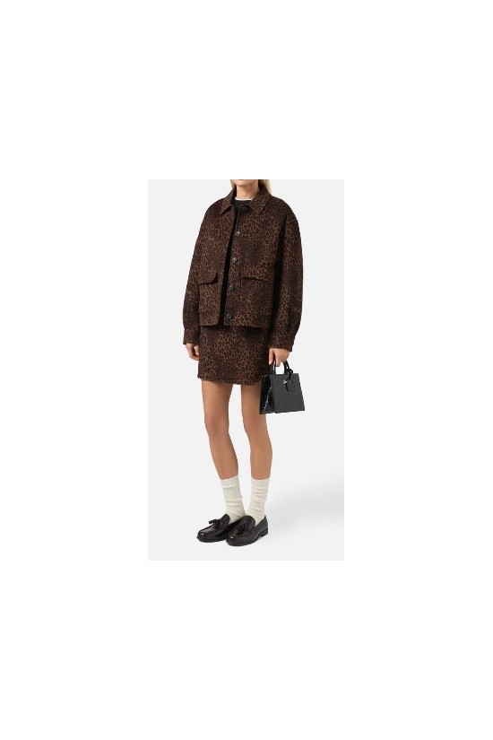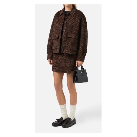 Mini skirt in an all-over animal pattern. Made of a double fabric, soft and compact. It features side slits and concealed zip closure on the back. Feminine and gritty, perfect to coordinate with her shirt jacket in the same texture.