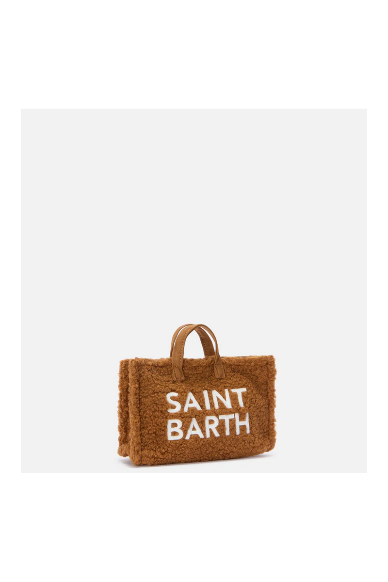 The Teddy Phone Bag is made of soft sherpa-effect fabric embellished with the contrasting embroidered "Saint Barth" lettering. Magnetic closure with handles and shoulder strap. Refined, compact and soft, it is the perfect accessory to carry the essentials with you at all times.