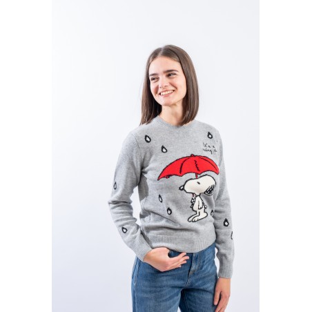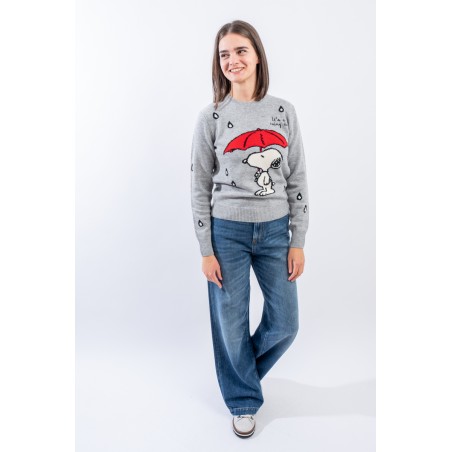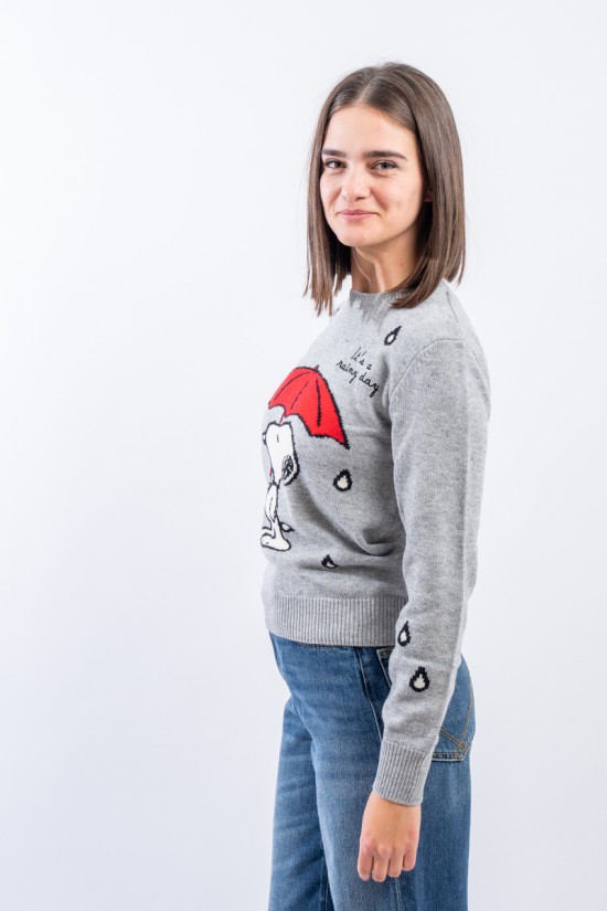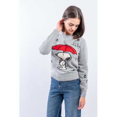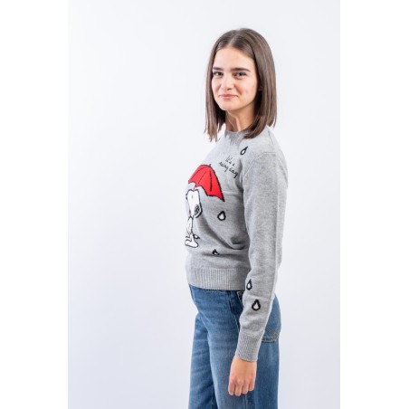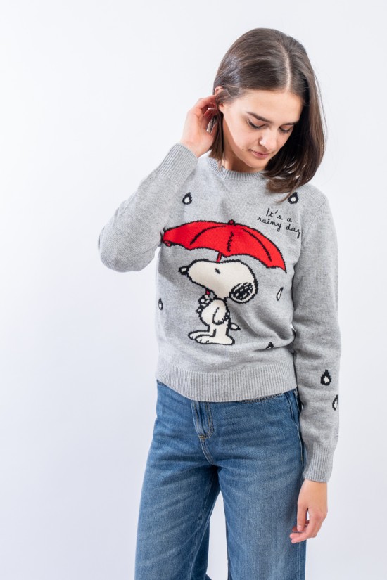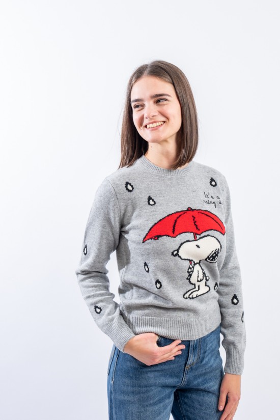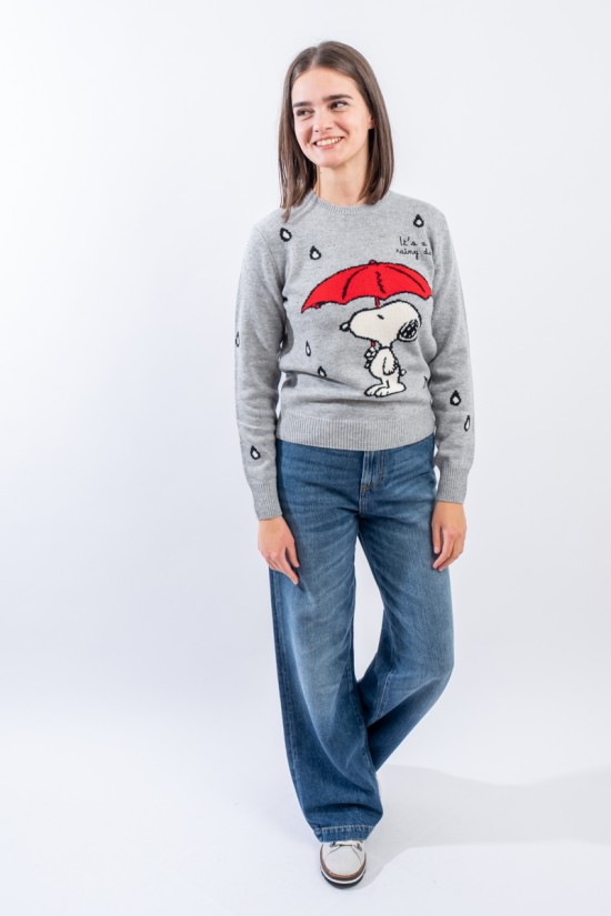 Crewneck sweater with Snoopy jacquard graphic and "IT's a rainy day" embroidery. Slim fit. Ironic and colorful, perfect for adding an informal and fun touch to your wardrobe!