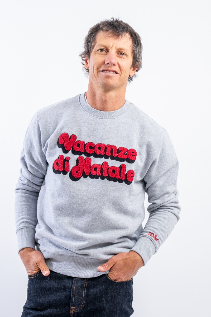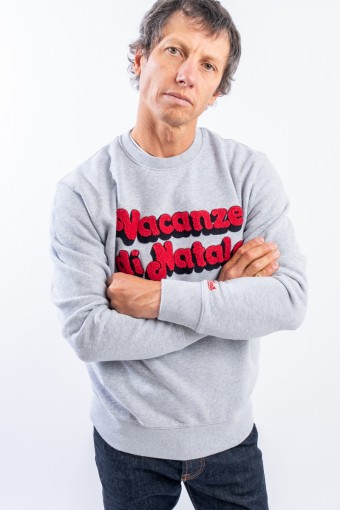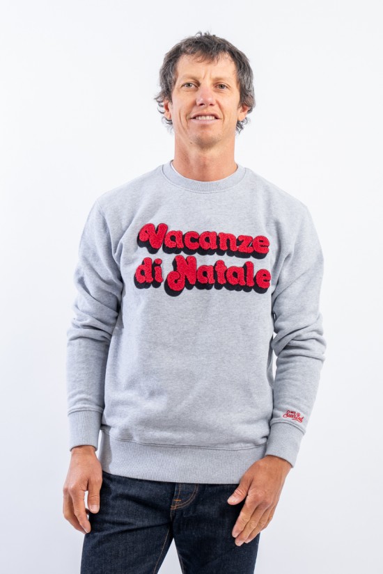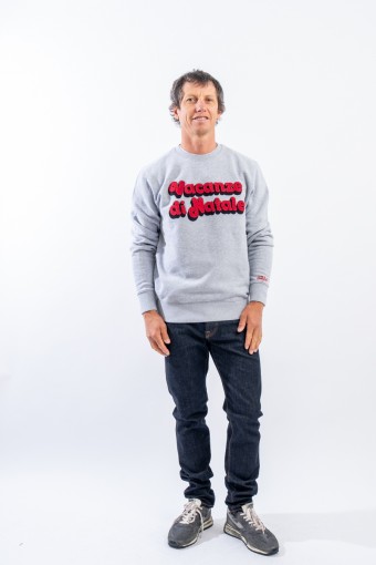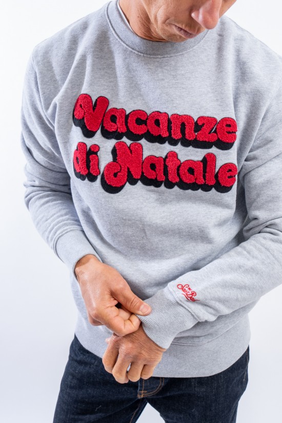 Crewneck sweatshirt made of 100% cotton and fleece inside. Garment from the limited edition Christmas Holidays collection. The classic design is enlivened by the contrasting writing embroidered on the front with a sponge effect. The line is completed by elasticated ribbed finishes on the neckline, cuffs and bottom.