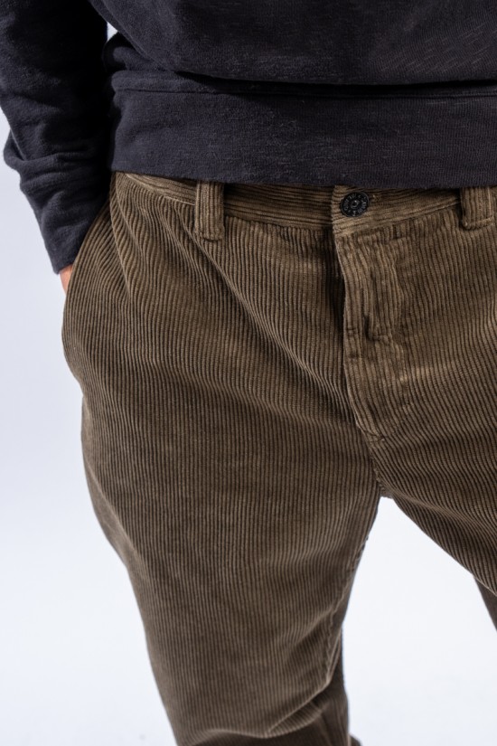 Trousers made of 100% cotton characterized by a ribbed workmanship with a thousand-stripe velvet effect. Contemporary and gritty also thanks to the application of bellows pockets on the thigh and back. Comfortable and soft, mid-rise and regular fit. At the waist, belt loops allow for a perfect fit. Ideal for giving character to a street outfit or with a matching shirt for an unparalleled total look.