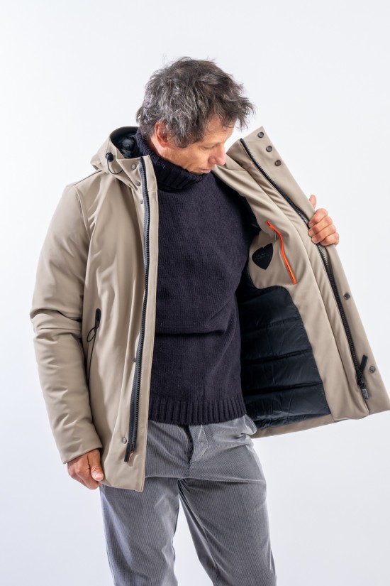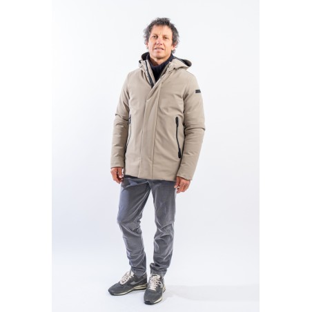 Surflex Winter Mdm is the RRD jacket encapsulates the contemporaneity of street style and the versatility required of a high-performance garment. Characterized by the construction of the Stratofabric#3 membrane fabric, which makes the garment waterproof and breathable. The exclusivity of the SURFLEX® fabric with its monochrome and super-matt look contrasts with the glossy finish of the internal tube channels. Caldo is padded with fine 90/10 duck down. Enveloping and protective thanks to the resistant full zip closure hidden by a flap fixed with buttons and the fixed hood with collar. Essential look highlighted by the quality of the cut and materials, for an indispensable everyday elegance!