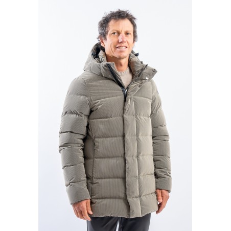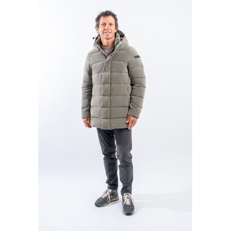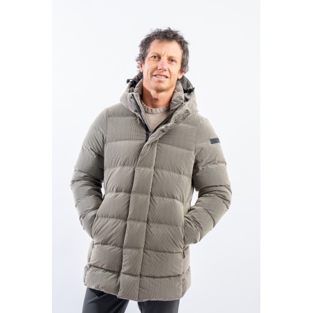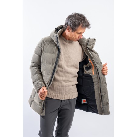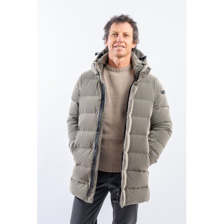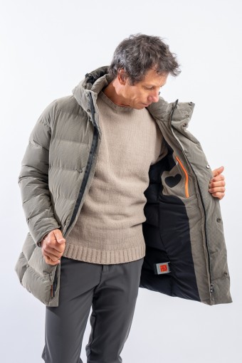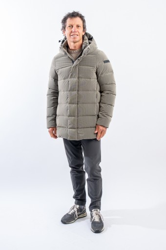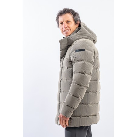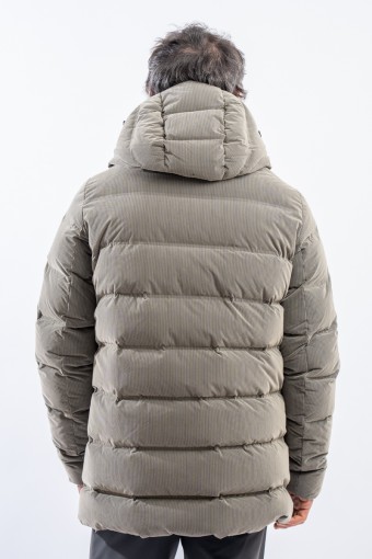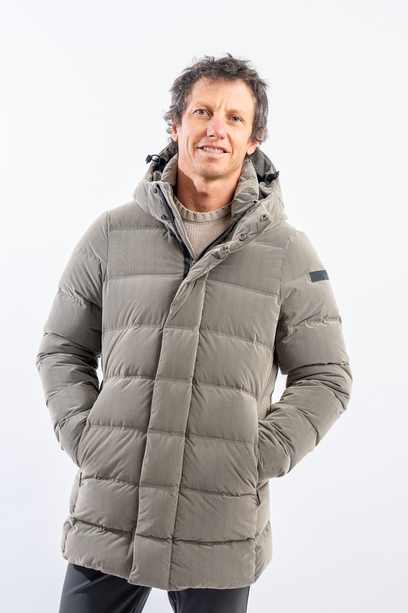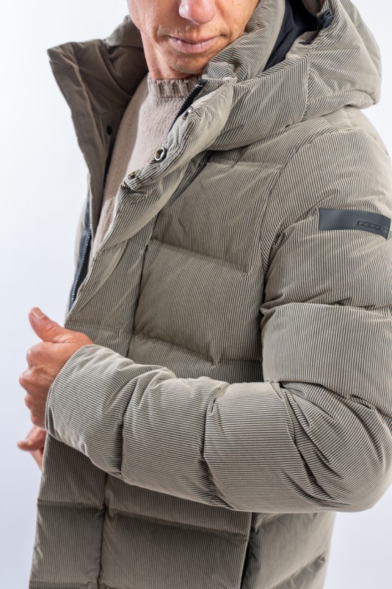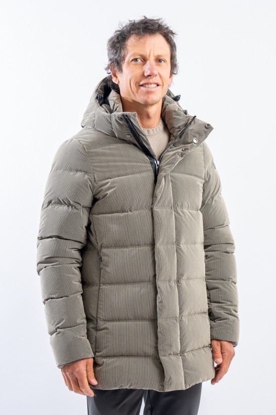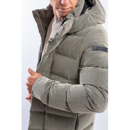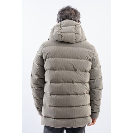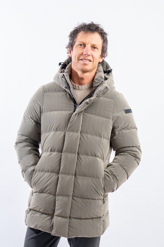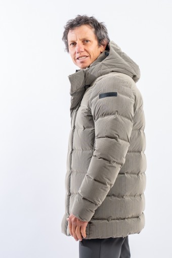 Minimal line and characteristic design for Techno velvet, the down jacket by RRD. Particularly soft, the flocked outer fabric with a ribbed pattern recognises a pleasant velvety touch. The unstitched boudine emphasizes a streamlined look, while also preventing the 90/10 duck down padding from leaking. Warm, insulating and comfortable. The durable zip closure is protected by a button flap. Snug when needed, thanks to the detachable hood.