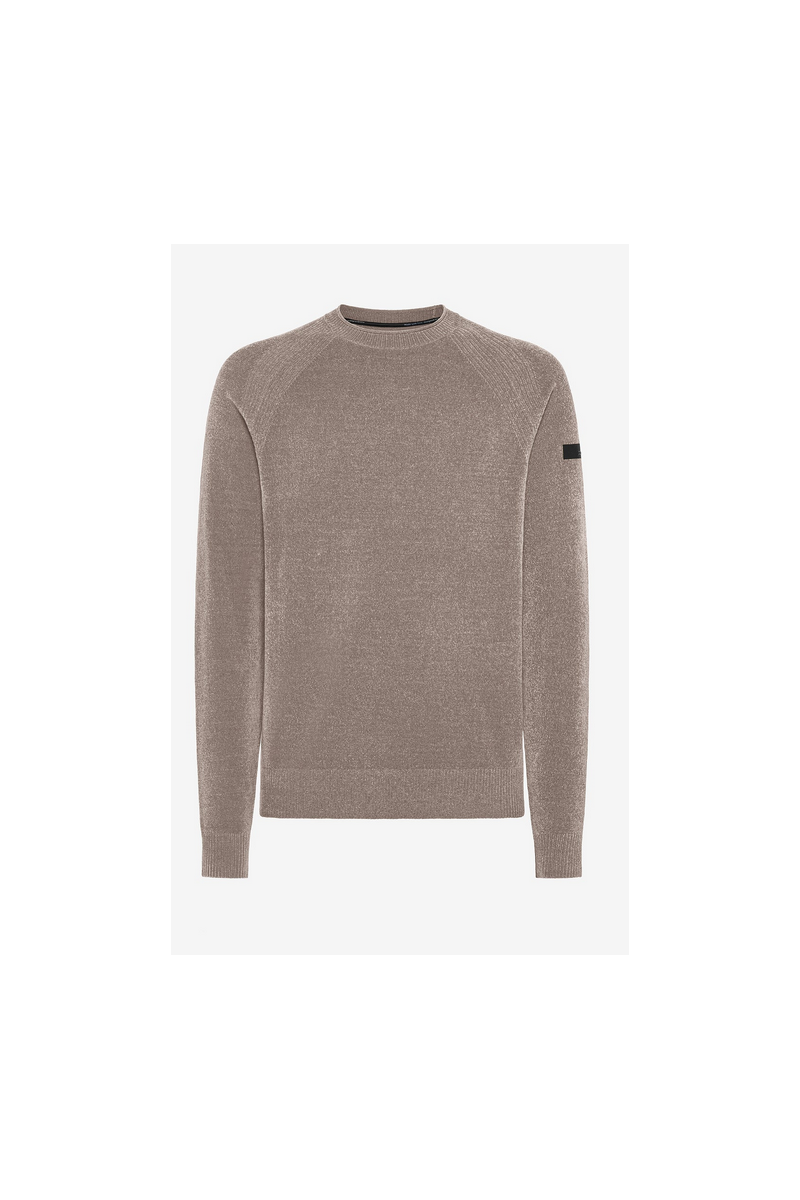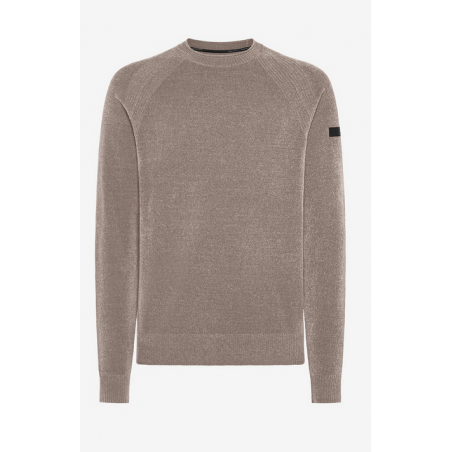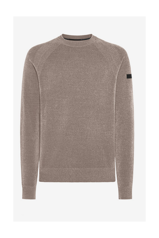 Essential design enhanced by the light recreated by the stretch chenille fabric. Comfortable thanks to the raglan sleeve and regular fit. Finished with a ribbed knit on the round and gathered neckline, cuffs and bottom. Passepartout for a wide selection of looks, from the most casual to the most sophisticated.