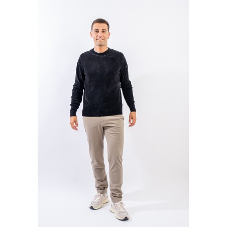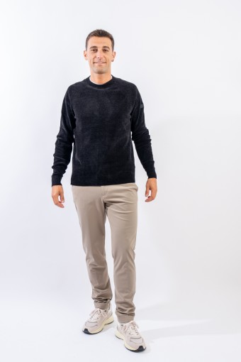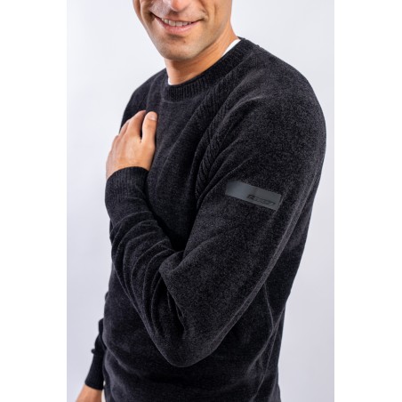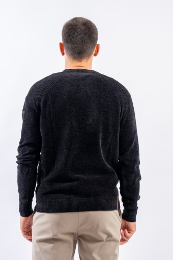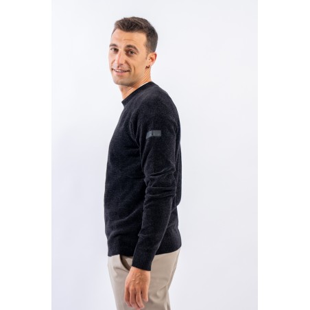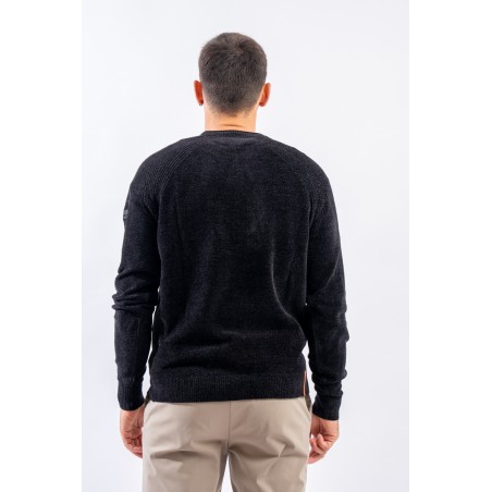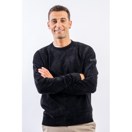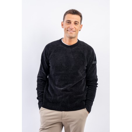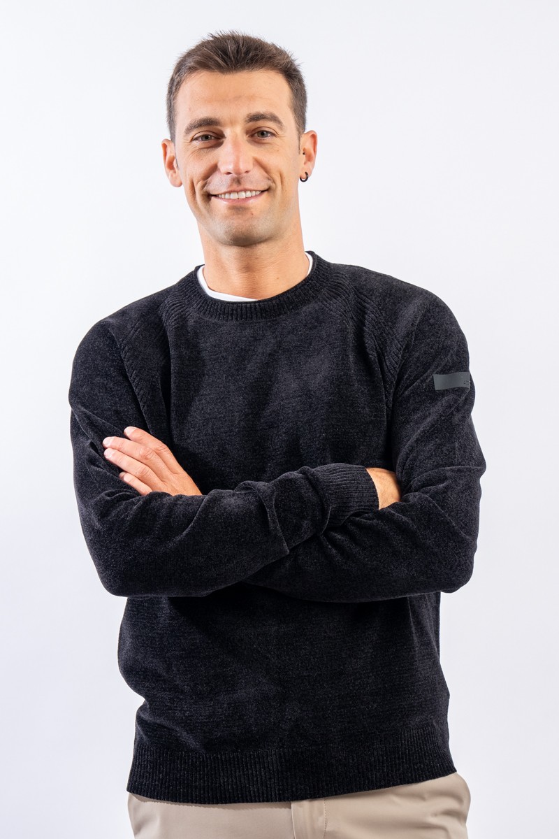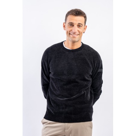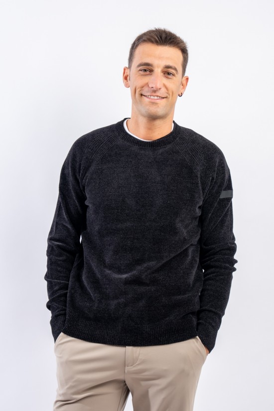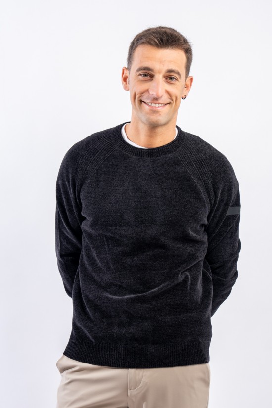 Essential design enhanced by the light recreated by the stretch chenille fabric. Comfortable thanks to the raglan sleeve and regular fit. Finished with a ribbed knit on the round and gathered neckline, cuffs and bottom. Passepartout for a wide selection of looks, from the most casual to the most sophisticated.