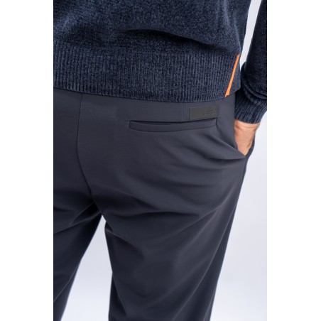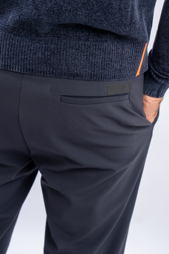 Stretch chinos in RRD tone. The revolutionary trousers made of stretch textured microfiber. Pratico is equipped with double side pockets and two rear flush pockets. Finished with a secure zip and double button closure and an elegant turn-up at the bottom. Soft and comfortable, it is ideal for wearing from morning to evening!