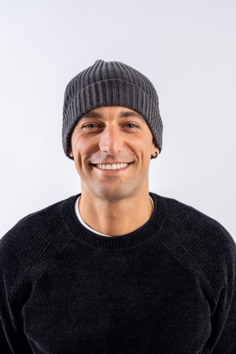 Soft and stretchy, it is enveloping and comfortable. Made from an all-over ribbed knit and characterized by a turn-up at the bottom. The iconic fluorescent orange mustache typical RRD is a must.