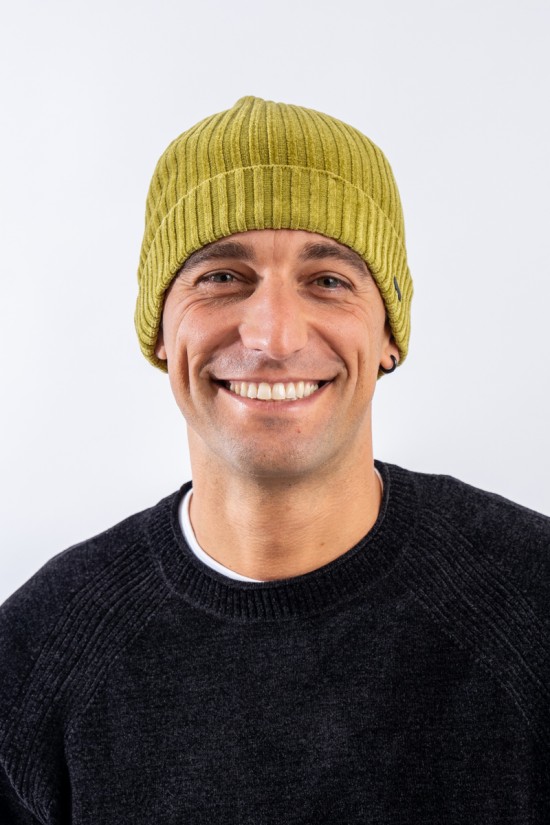 Soft and stretchy, it is enveloping and comfortable. Made from an all-over ribbed knit and characterized by a turn-up at the bottom. The iconic fluorescent orange mustache typical RRD is a must.