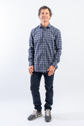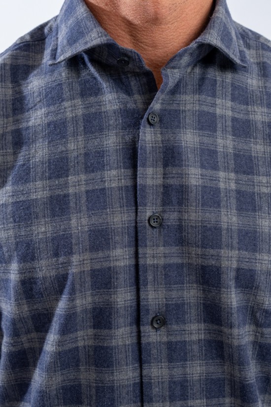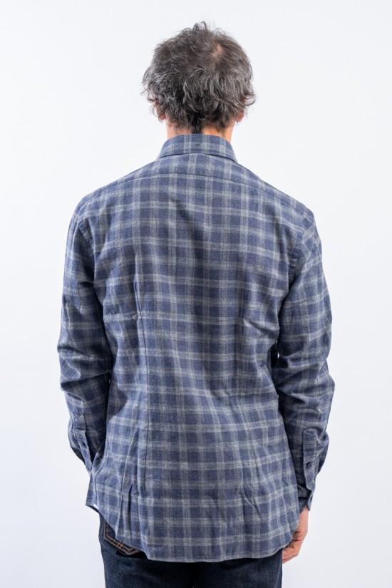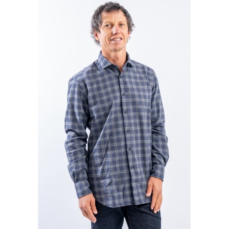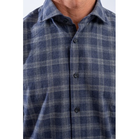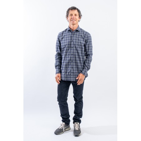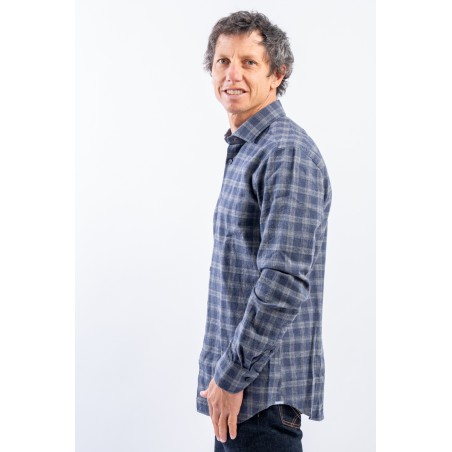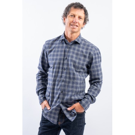 Sporty and worn effect for this shirt by XACUS, made of 100% cotton. Updated lines of the French collar and rounded cuffs for a softened and casual look. Comfortable and slim fit for everyday comfort.