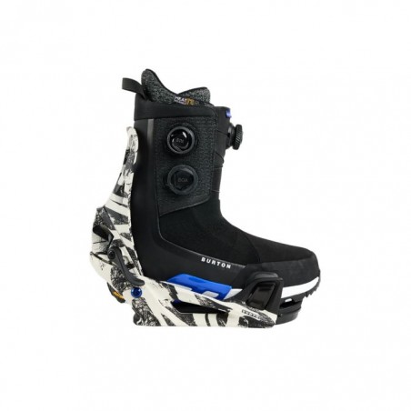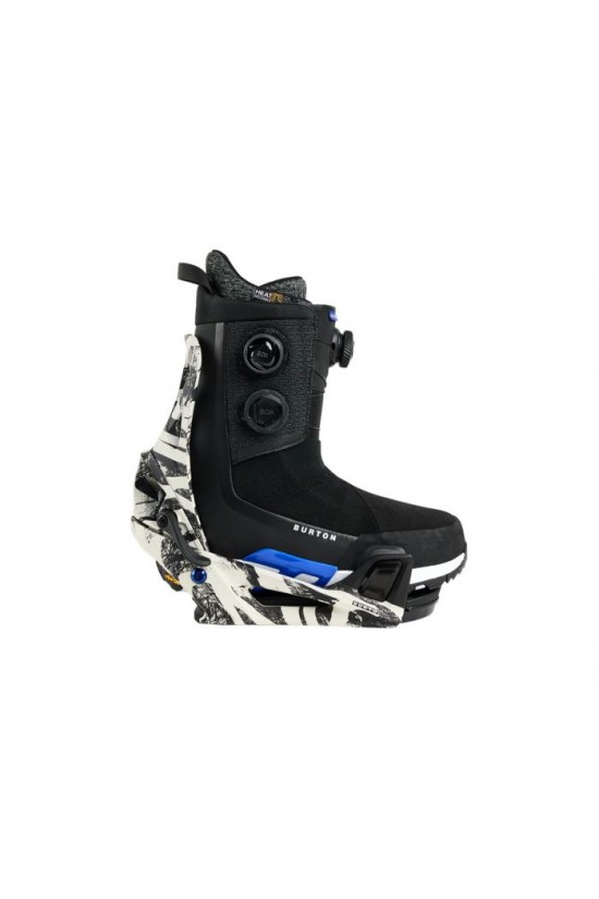 BURTON STEP ON MAN Simple. Sure. All Mountain. These men's bindings combine an intuitive pairing of boots and bindings with all-mountain performance. The three connection points offer simplicity, speed, safety and unparalleled board control. The Re:Flex mounting system improves flexibility and feel with the board while reducing its weight and is universally compatible with ALL current snowboard mounting systems. The Flad system also allows you to make micro adjustments in the forward lean angle for a personalized position. BURTON, INNOVATORS AND CREATORS FOR THE SNOWBOARD WORLD!