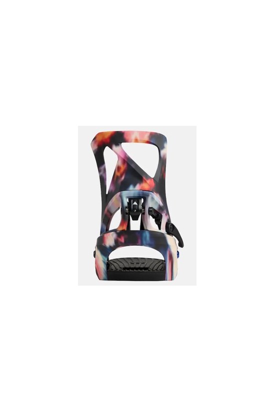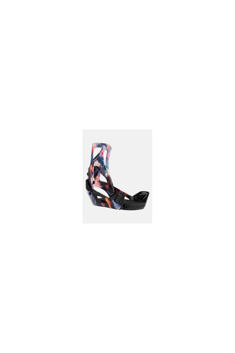 BURTON STEP ON WOMAN. Simple. Sure. All Mountain. These women's bindings combine an intuitive fit between boots and bindings, with all-mountain performance. The three connection points offer simplicity, speed, safety and unparalleled board control. The Re:Flex mounting system improves flexibility and feel with the board while reducing its weight and is universally compatible with ALL current snowboard mounting systems. The Flad system also allows you to make micro adjustments in the forward lean angle for a personalized position. BURTON, INNOVATORS AND CREATORS FOR THE SNOWBOARD WORLD!
