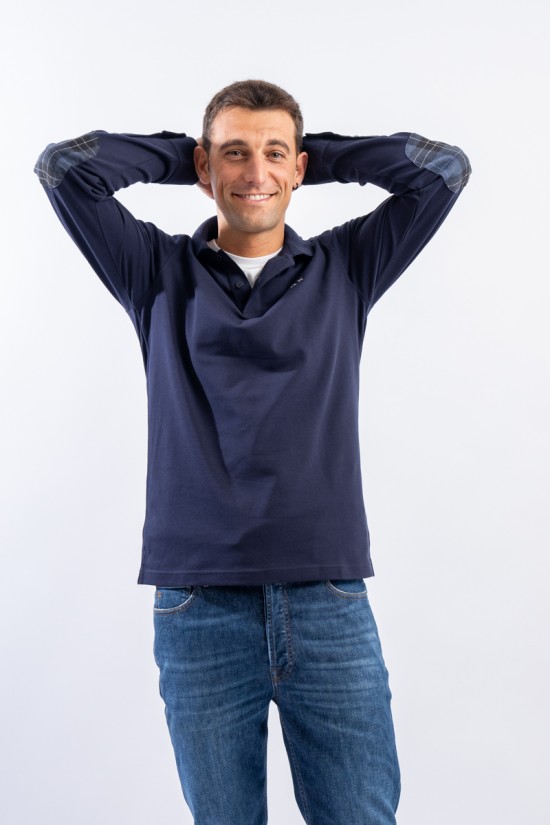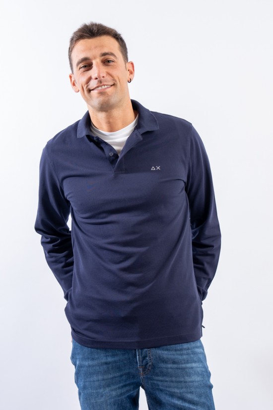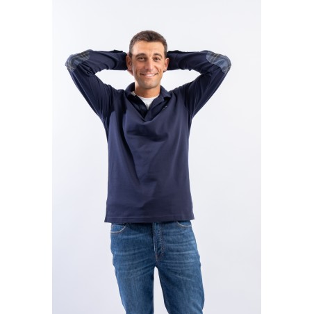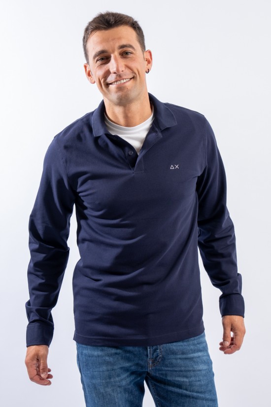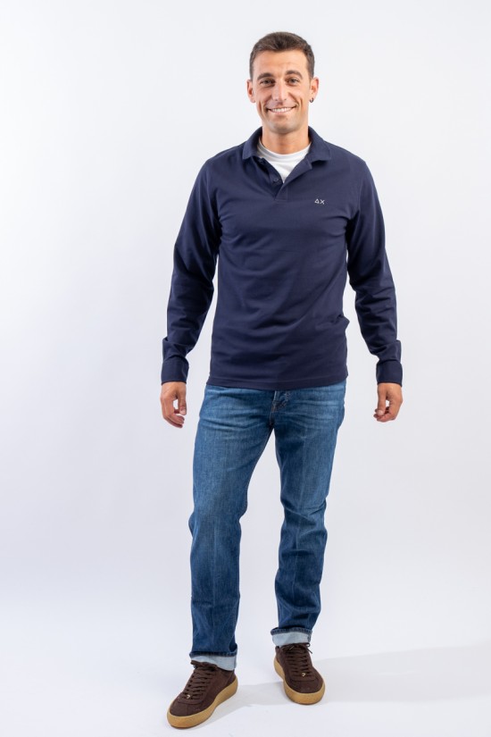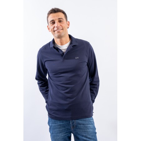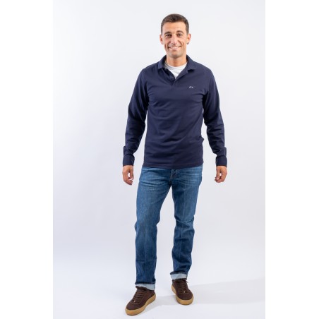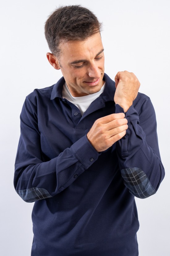 Polo shirt made of stretch cotton piqué. The distinctive design is enlivened by the check-patterned patches behind the elbows. Comfortable collar finished with elasticated ribs. Polo sun 68, an inevitable icon in the men's wardrobe.