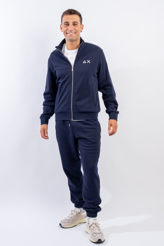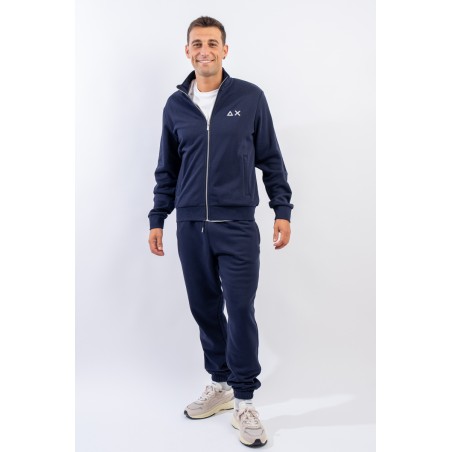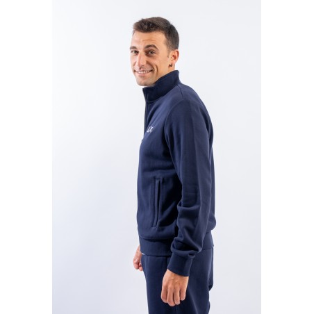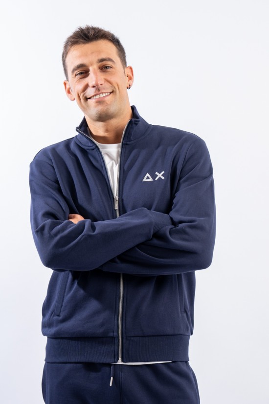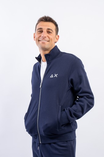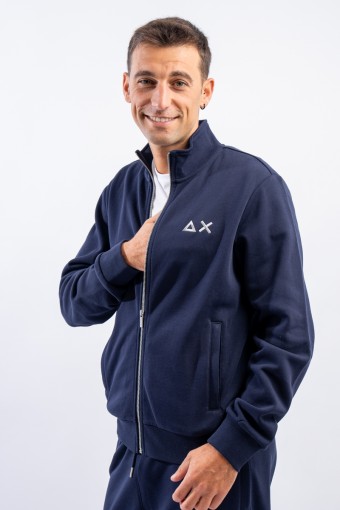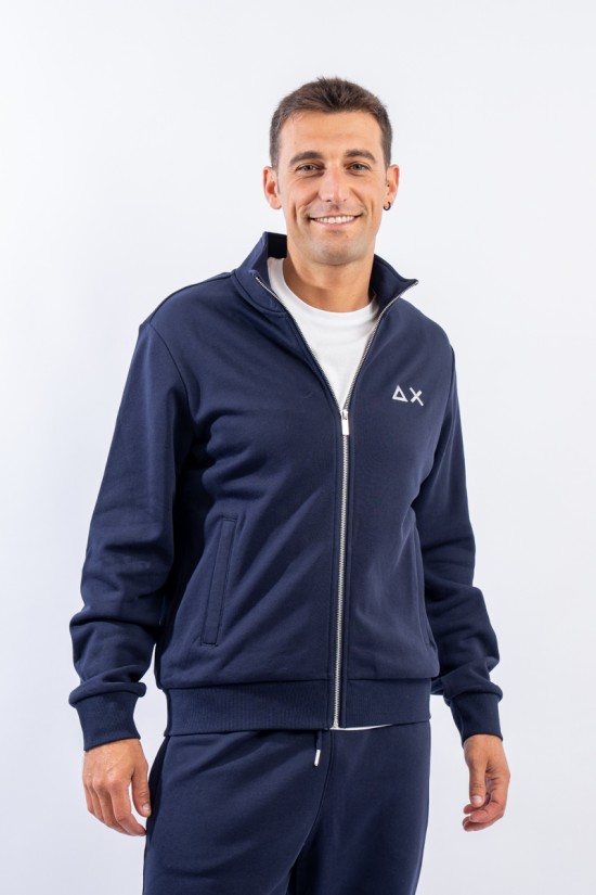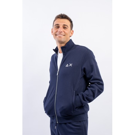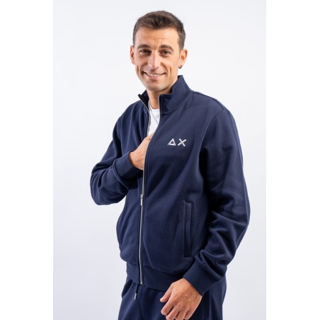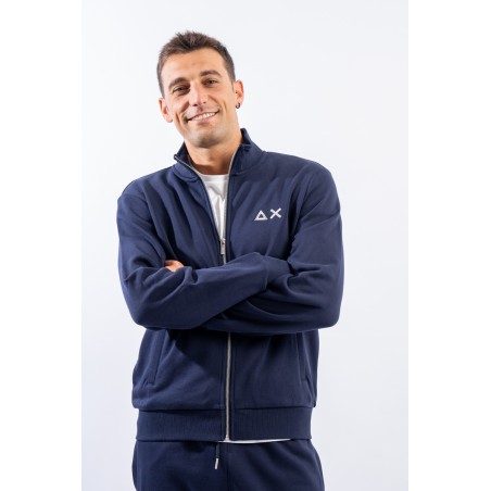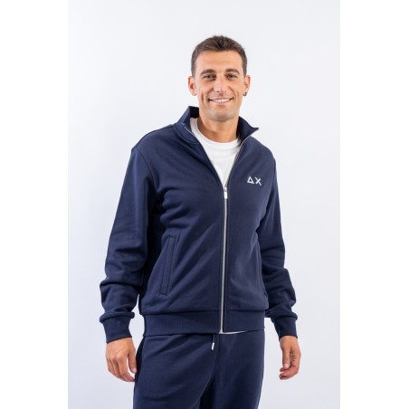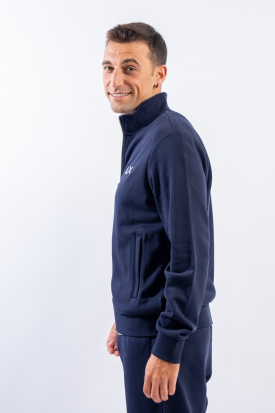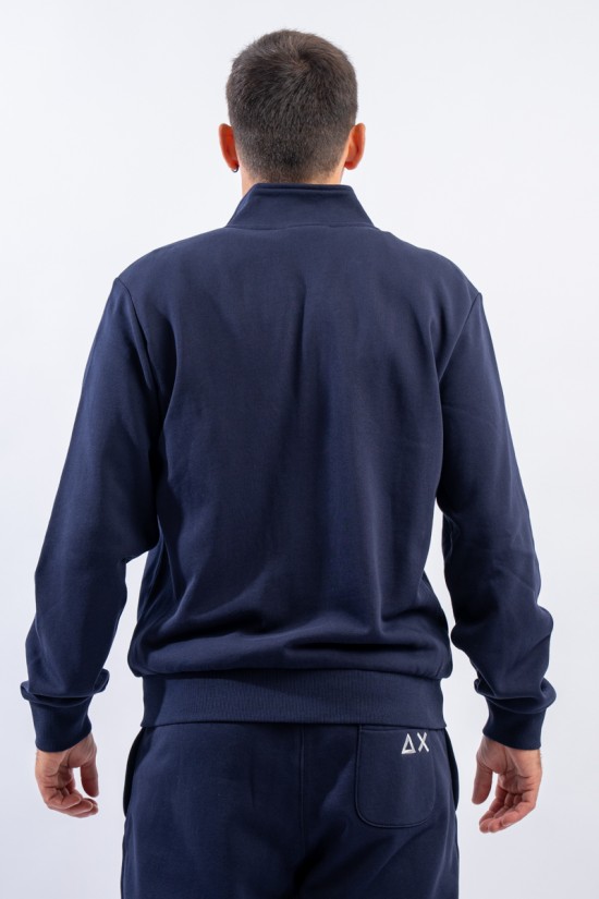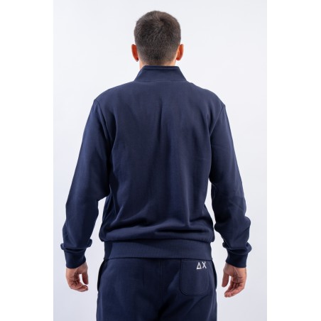 Sweatshirt with stand-up collar made of cotton blend, warm and light. Regular fit. Comfortable and practical thanks to the central full zip opening and the two side pockets. Finished with a ribbed knit on the cuffs, collar and bottom. To complete the look, the maxi logo sun 68 embroidered in contrast on the chest.