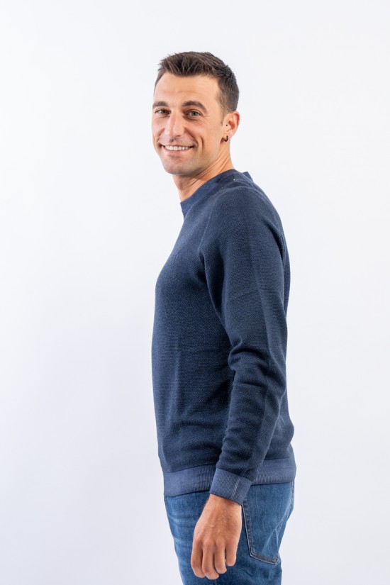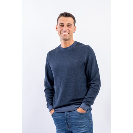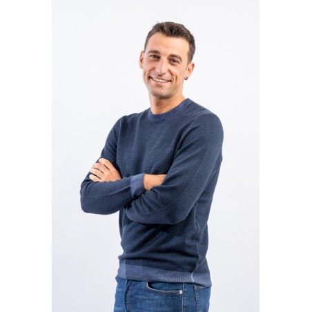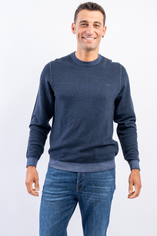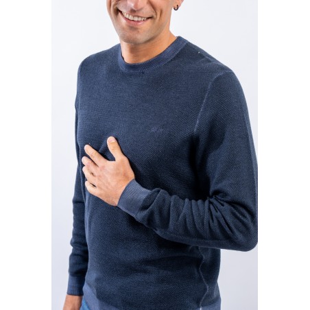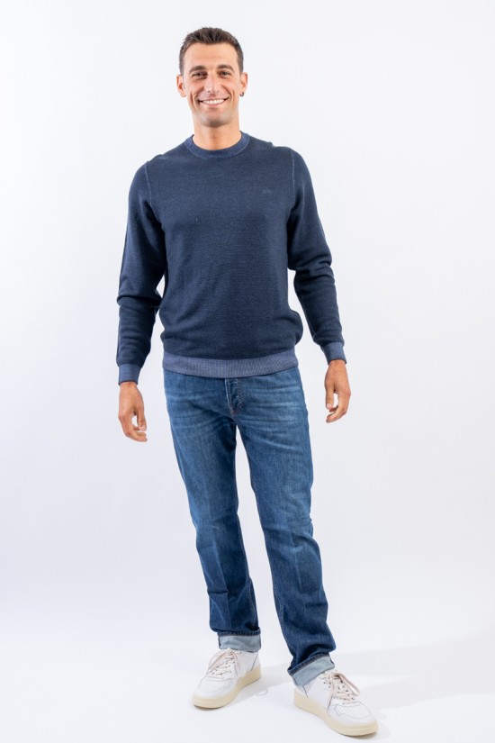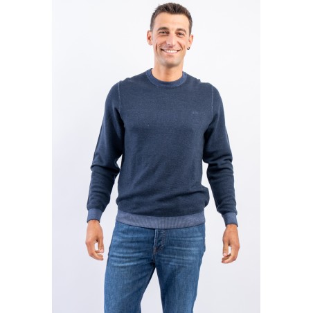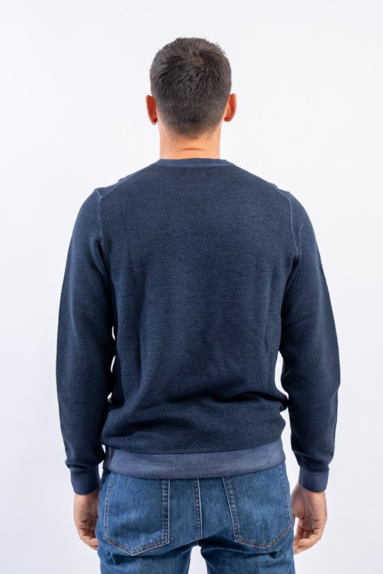 Crewneck sweater made of merino wool with vintage-effect rice stitch processing. Fine yarns and contemporary volumes characterize this sweater signed by sun 68. Tight, elasticated ribbed trims allow for an optimal fit and fit.