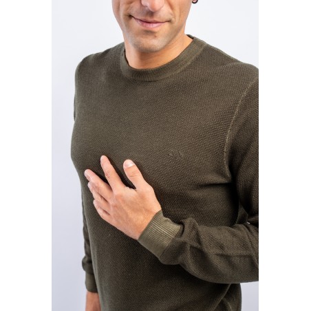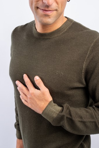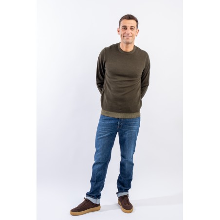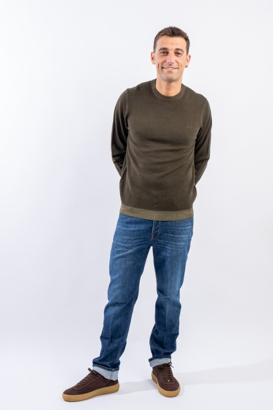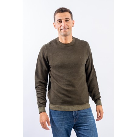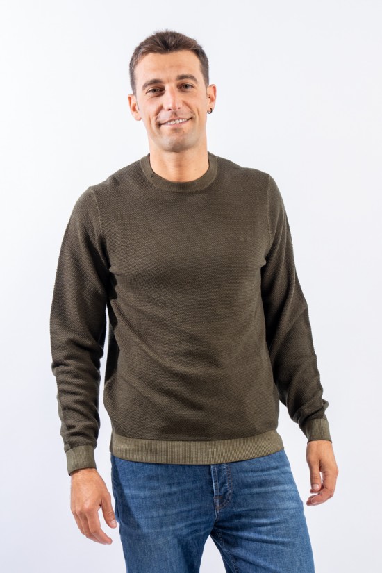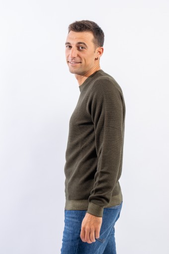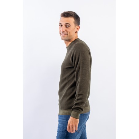 Crewneck sweater made of merino wool with vintage-effect rice stitch processing. Fine yarns and contemporary volumes characterize this sweater signed by sun 68. Tight, elasticated ribbed trims allow for an optimal fit and fit.