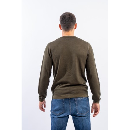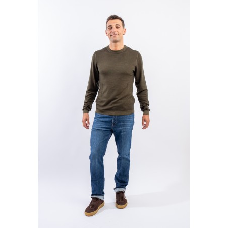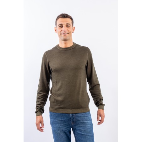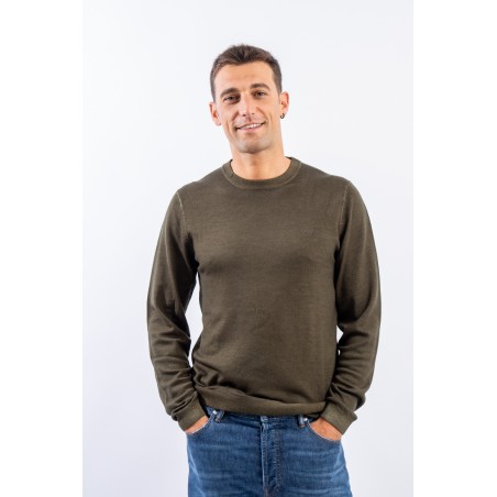 Crewneck sweater made of merino wool characterized by a vintage-effect workmanship. Tight, elasticated ribbed trims allow for an optimal fit and fit.