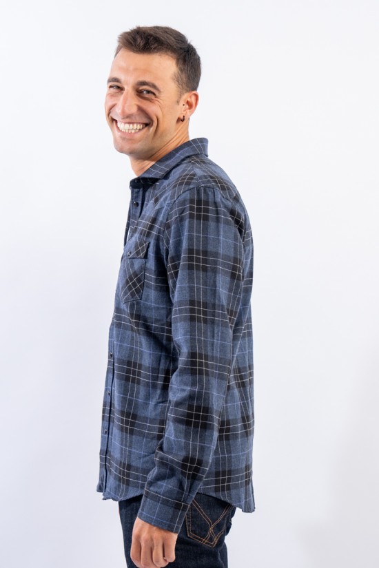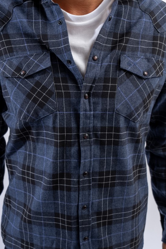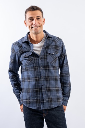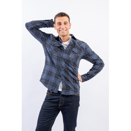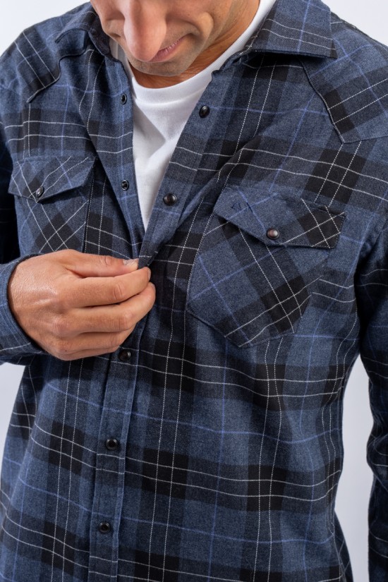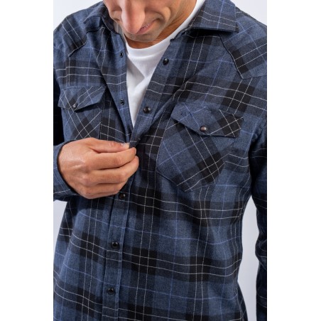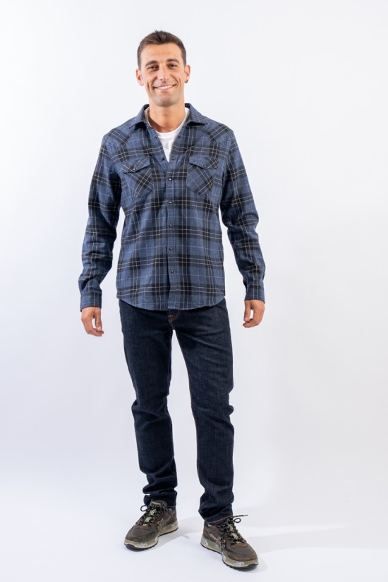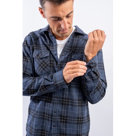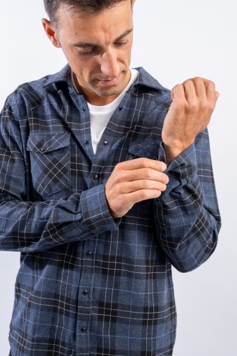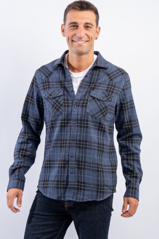 Shirt made of cotton, comfortable and comfortable. French collar and modernized central closure with practical press studs. The maxi check pattern gives personality to the garment which is also made gritty by the application of two gusset pockets on the chest. Comfortable fit, perfect to wear even over a t-shirt.
