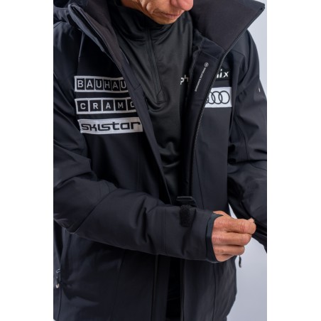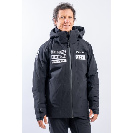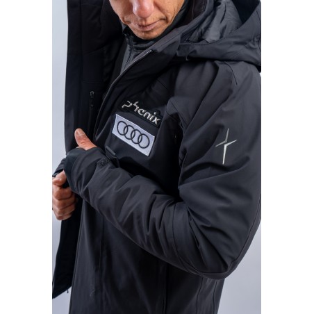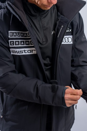 Technicality and comfort are the key words that describe the official jacket of the Swedish alpine ski team made by PHENIX. Designed to meet high performance standards, it is made of 4-way stretch technical fabric, highly waterproof and breathable. Padded with Hallow Thermo PHENIX , it captures and releases the heat produced by the body, ensuring optimal insulation and warmth. Simple design enriched with every anti-snow option. The additional ventilation zips, and the detachable hood, allow you to adjust the internal micro climate and adapt the jacket as needed. The model features official sponsor patches on the chest for a sporty professional look.