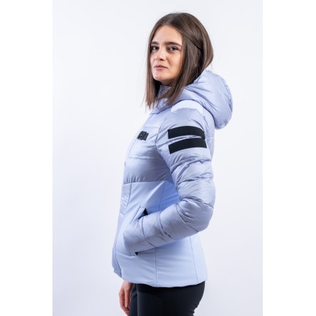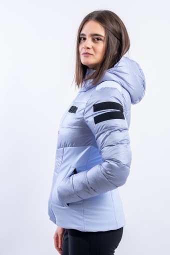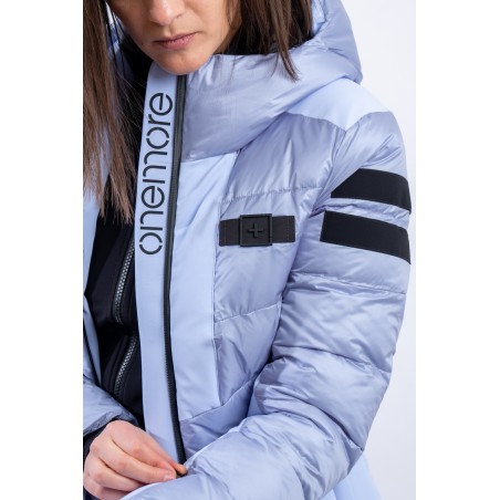 Born in South Tyrol ONE MORE is the result of the fusion between sport and nature, it stands out as a contemporary, technological and ecological brand. The Due Sei Uno ski jacket is characterized by a play of fabric and color. Externally made of satin nylon and enriched with inserts in matt stretch fabric. A gritty and contemporary look defined by the play of colors and fabrics, embellished by the graphic stitching and iconic details of the brand. The essential design and the enveloping fit enhance the figure by favoring its movements. Style and technicality come together in a unique and versatile garment that can be adapted to any situation.