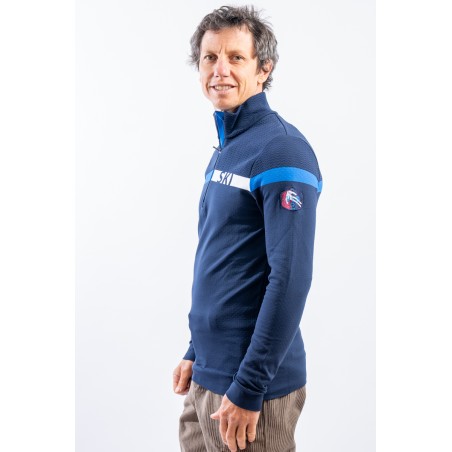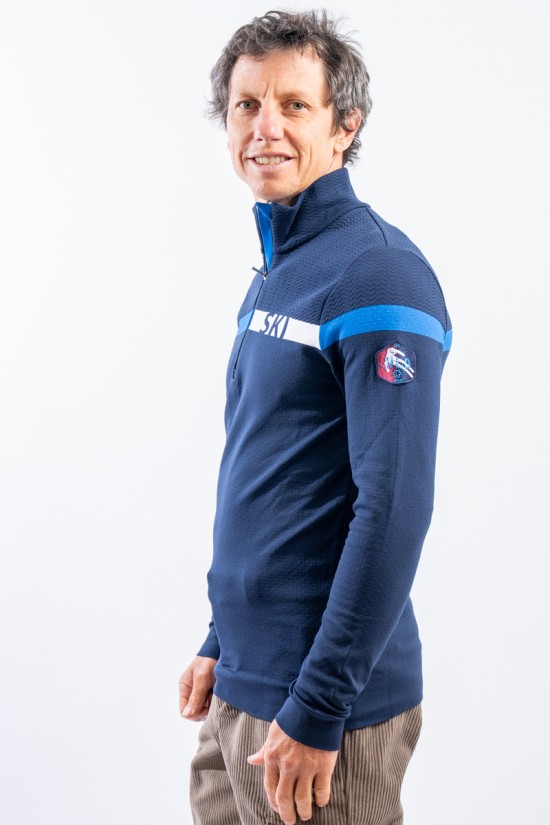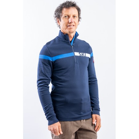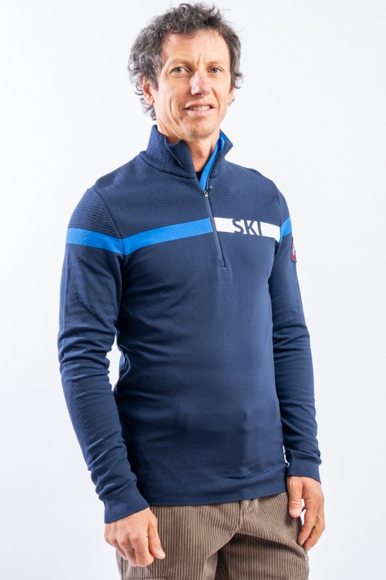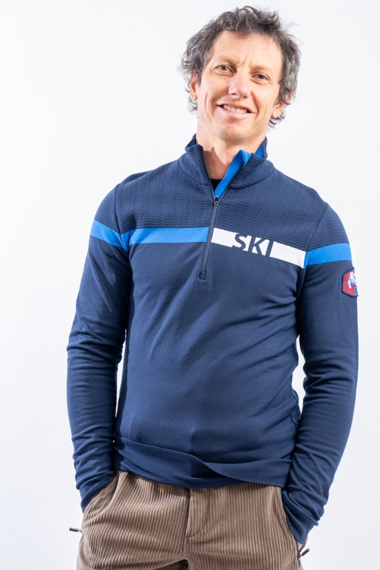 Half-zip undersuit in DH-Tech 400 high performance fabric, for a highly insulating and breathable garment. Product made with an extruded polyurethane-based yarn characterized by a hollow thread internally. Quick-drying, it is anti-odor and antibacterial. This unprecedented solution, strictly Made in Italy, makes the product compact and elastic for unparalleled comfort and fit.