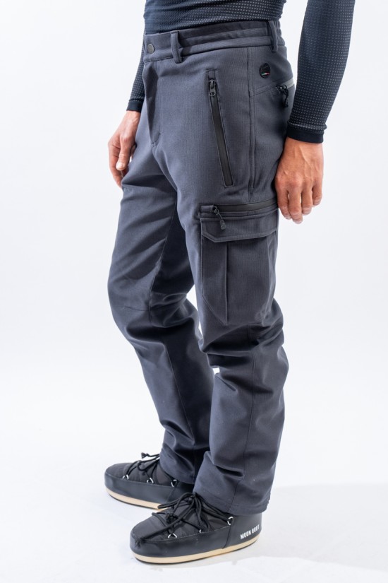 Ski pants made of soft elastic fabric worked in all-over ribbed for a ribbed velvet effect. Gritty and modern, it is characterized by the patch pockets on the thighs and the various pockets with contrasting rubberized zips. The Yushan membrane makes the garment resistant to wind and water. Breathable thanks also to the padding with a honeycomb structure that facilitates the exit of moisture. Comfortable and warm, it is perfect for tackling the ski slopes in style and safety.
