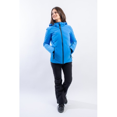Designed for the demanding skier, the Virtus down jacket is highly waterproof and breathable thanks to the lamination of the outer fabric with the Dermizax EV membrane. Made of stretch fabric it ensures maximum freedom of movement and the down padding ensures optimal warmth and insulation. The ergonomic cut allows it to fit perfectly and the graphic quilting with taped boudines gives character and dynamism to the garment. Comfortable and functional, it is equipped with every windproof and snowproof option, and the hood is detachable, to adapt it perfectly to all conditions.