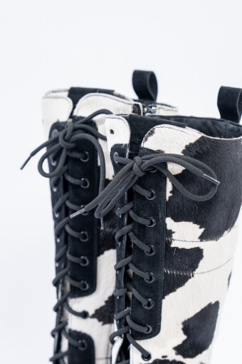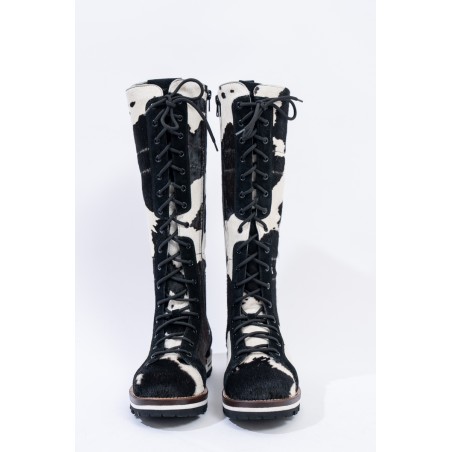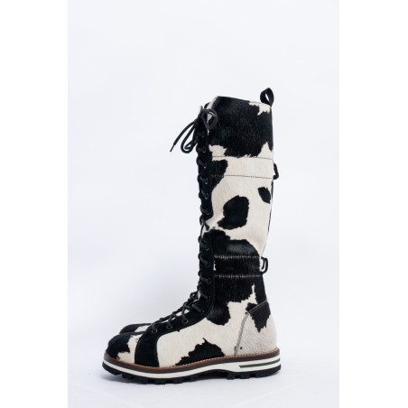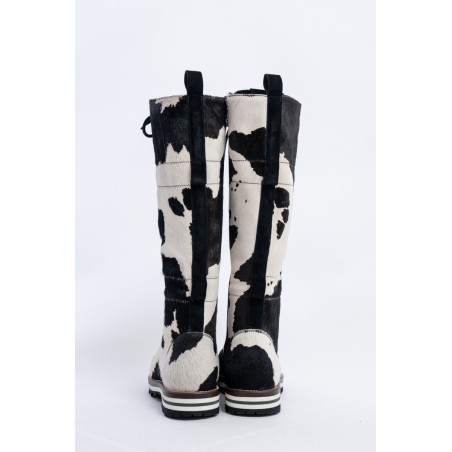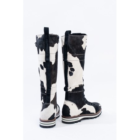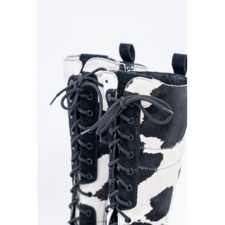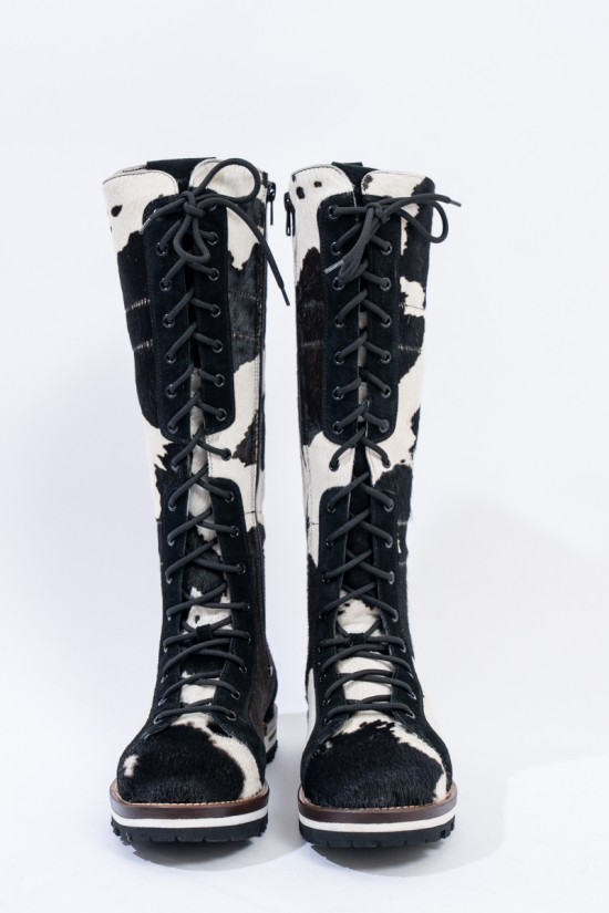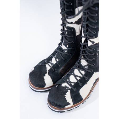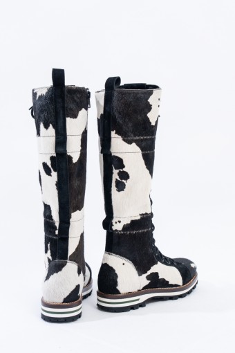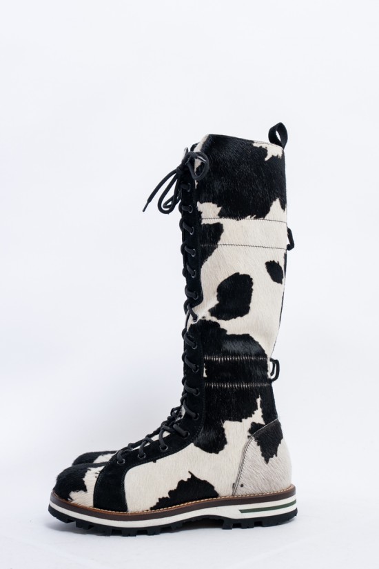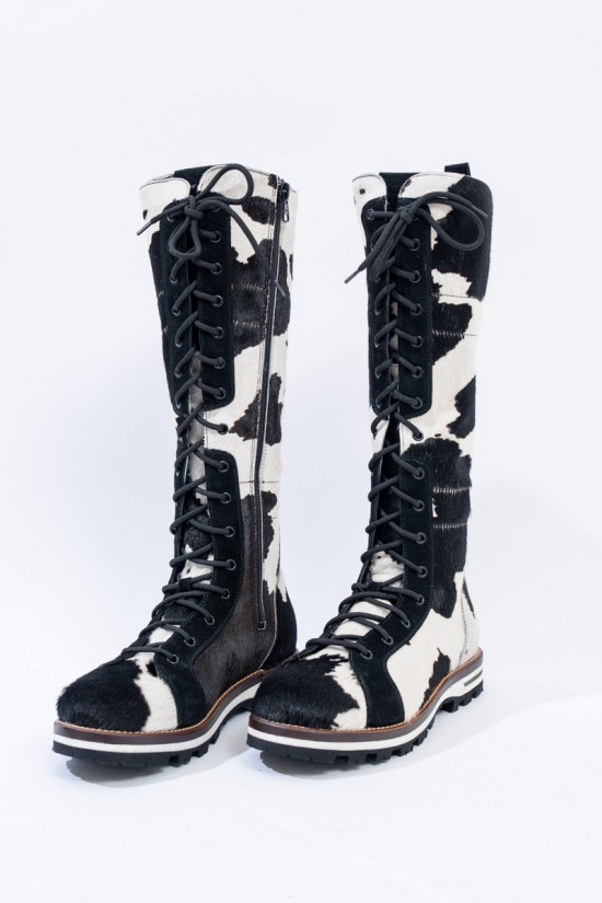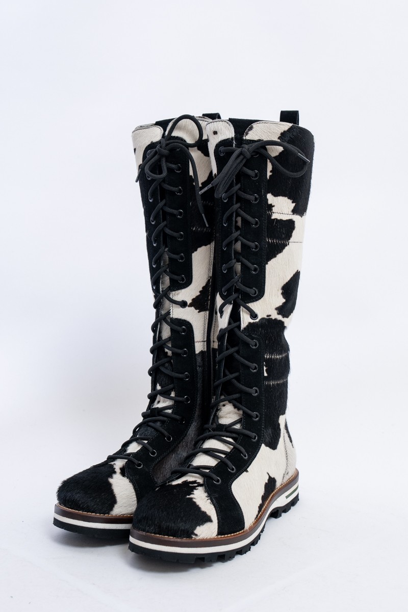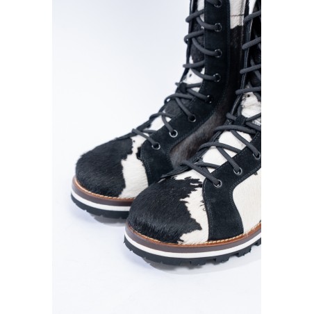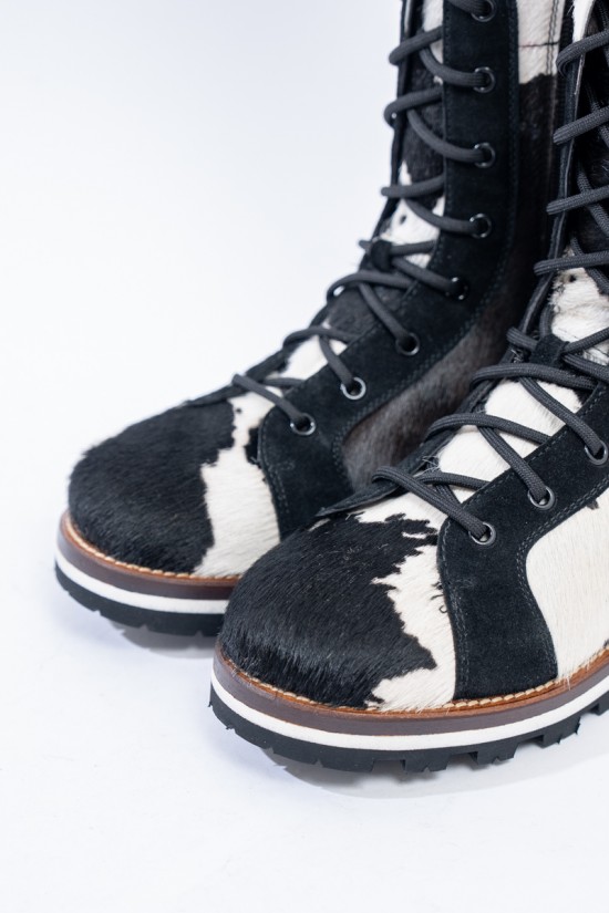 Mon Piz brand inspired by the Alpine peaks, handcrafts and 100% in Italy high quality products. This model, a lace-up combat boot made entirely of animal print pony skin, is the right model to give grit and originality to any look at high altitude. Perfect for the mountains thanks to the vibram sole and leather welt, it is also ideal in the city thanks to its elongated and attractive design. Born from the encounter between urban style and worldly classic, MON PIZ is perfect in any situation and for any occasion. Every detail encompasses craftsmanship and Italian quality for the new must-have of the present and future winter.