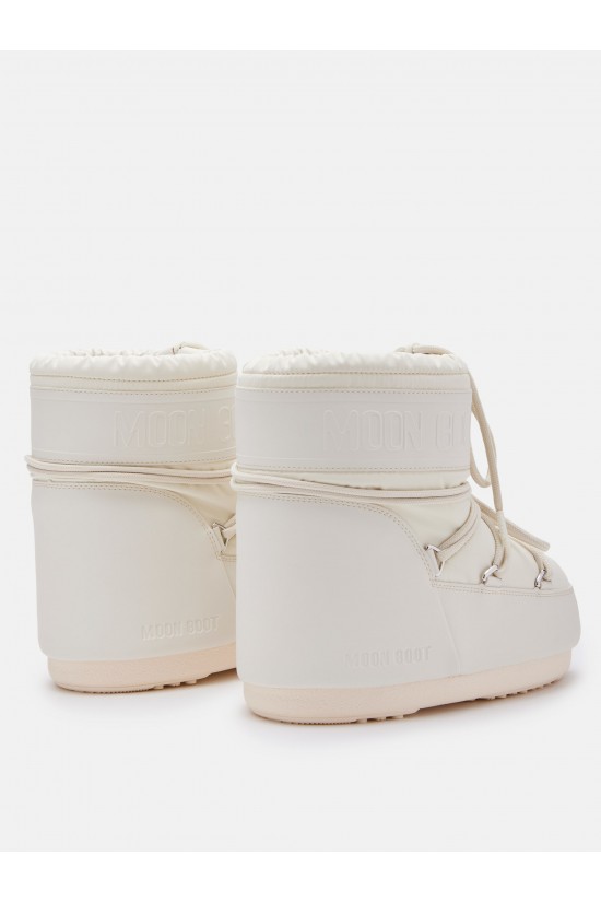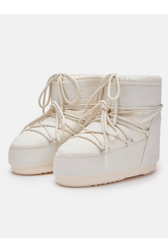 Iconic MOON BOOT model in a low version revisited in materials, it is covered in resistent rubber. The insulating padding keeps the foot warm and dry. Genderless, ambidextrous design. The heel is reinforced and the sole is non-slip, to maintain grip on all types of terrain. Braided laces on the front and a colour-tone logo band on the collar.