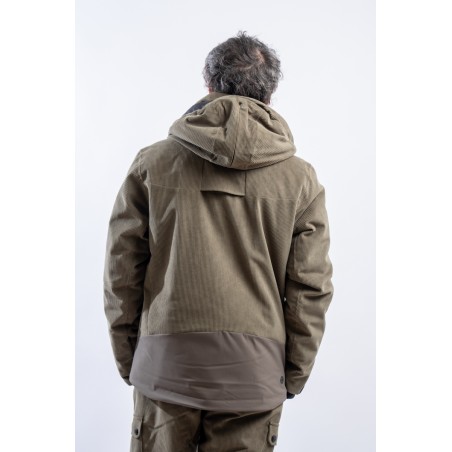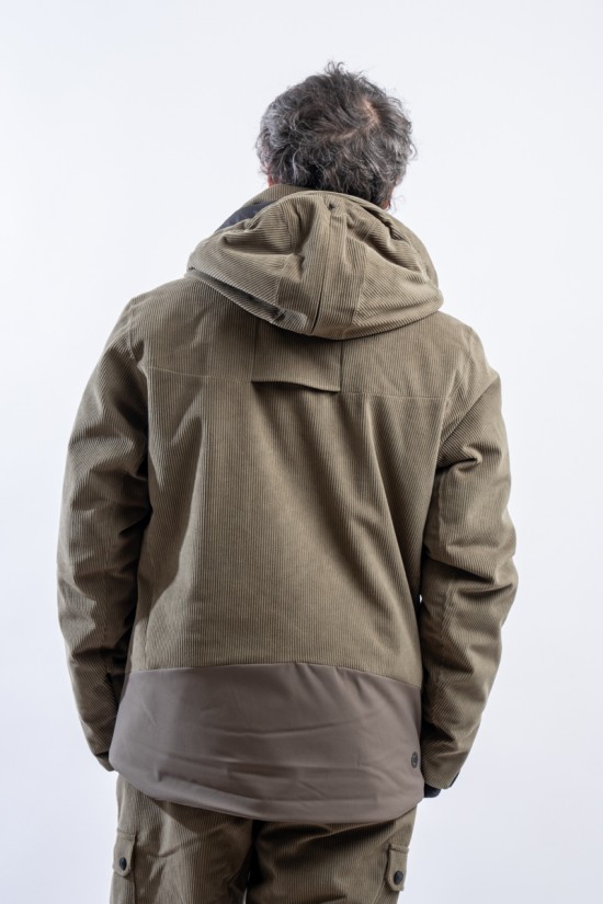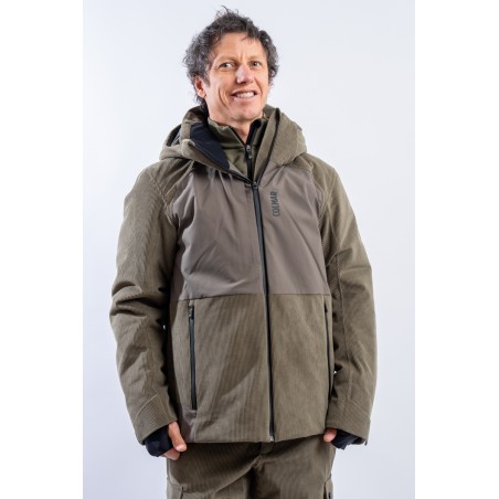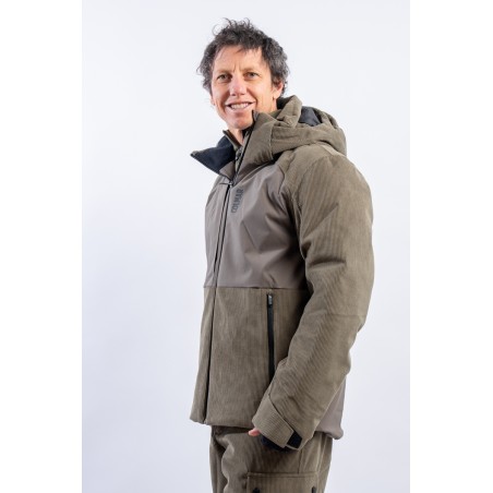 The New Cordury ski jacket made of double fabric, ribbed velvet and smooth stretch fabric, is contemporary and dynamic. Perfectly adaptable to the weather conditions, it is equipped with an easily detachable hood and additional ventilation zips. The padding in recycled technical wadding guarantees optimal warmth and insulation. The rear gusset guarantees additional ventilation and perfect breathability. Comfortable to wear, it is perfect for the slopes and for any adventure on the snow.