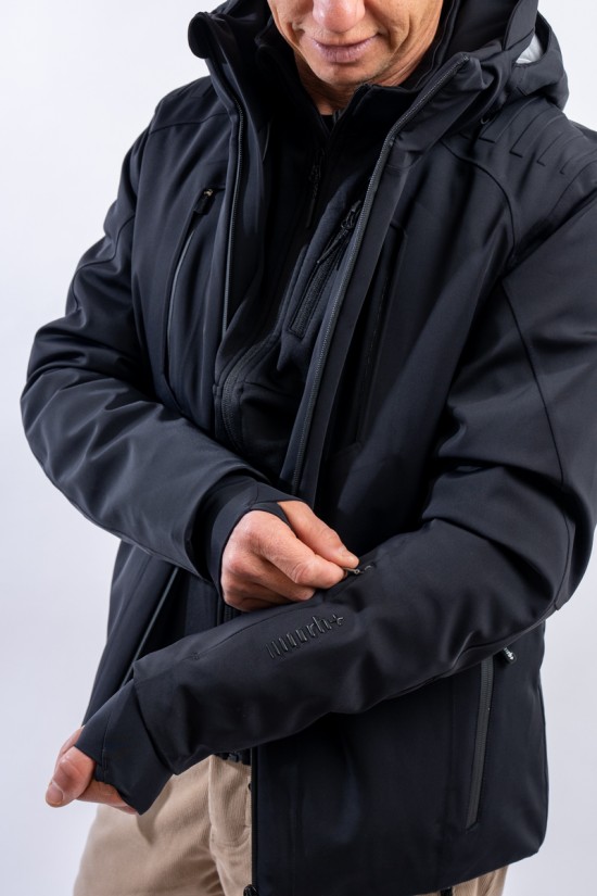 Logo Advanced jacket is made of Biomorphic eco knt 360° fabric, stretch in 4 directions is extremely comfortable and soft. Fully taped, it ensures high standards of waterproofing and insulation. The ergonomic design and pre-shaped sleeves ensure an optimal and adjustable fit. The detachable hood allows it to be adapted to the weather conditions ensuring maximum protection and safety. Equipped with multiple internal and external pockets and every snow option, it is perfect for tackling the slopes in total safety without neglecting style and comfort.