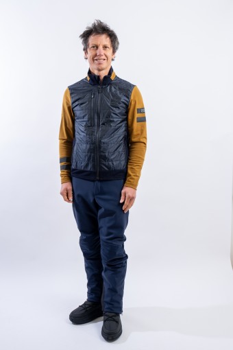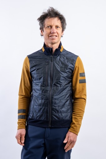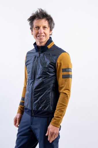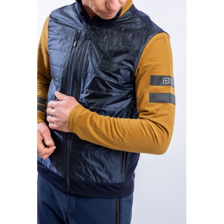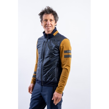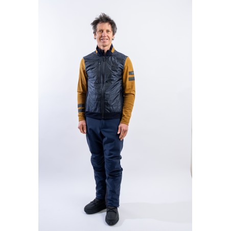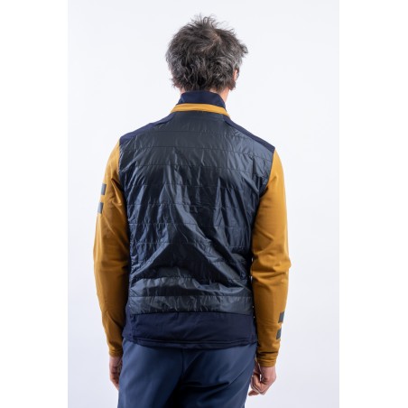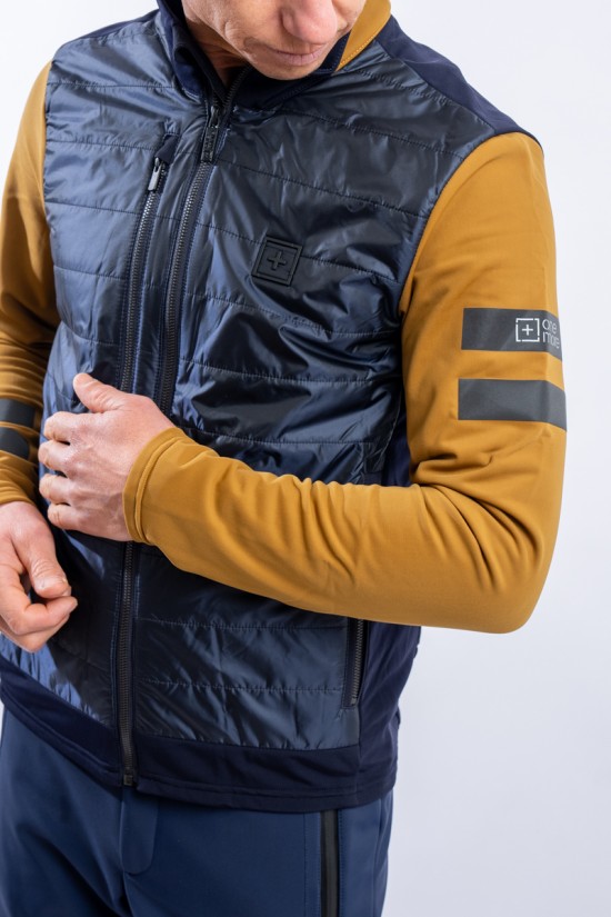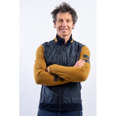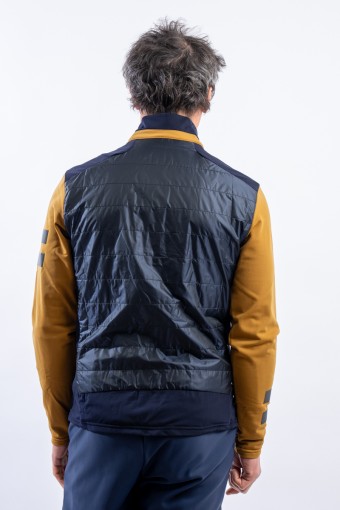 Full zip undersuit made of stretch fleece with Econyl regenerated yarn. Breathable and warm, it is lightly padded with technical wadding in the torso area. Characterized by the play of colors and fabrics and the distinctive contrasting details of the brand, it is perfect on several occasions. Equipped with side pockets and a top pocket, it is ideal for outdoor sports or as an under jacket.