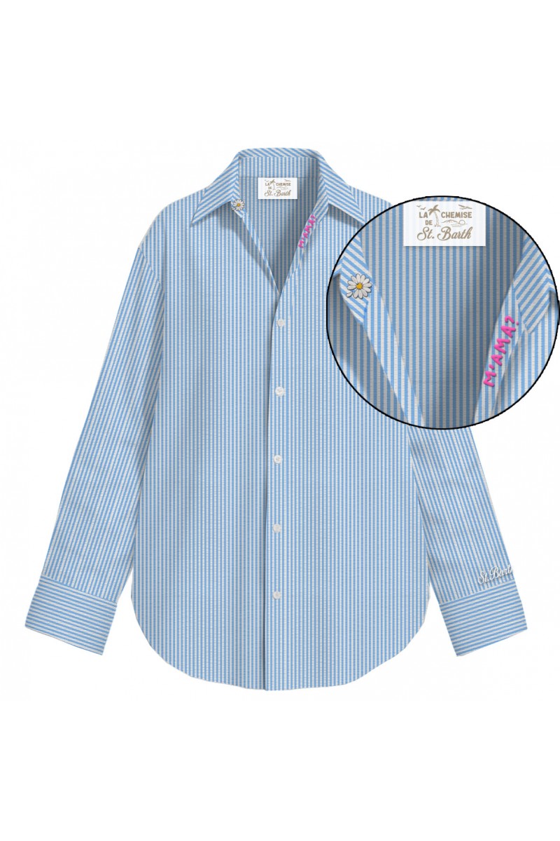 Shirt made of seersucker cotton, soft, fresh and light. In a thousand-striped pattern in pastel tones, enriched by embroidery on the inside of the neck. To embellish a casual look with fantasy and freshness, the Cristal shirt by St Barth is the perfect garment. Regular fit, it is comfortable and practical, ideal in the summer.