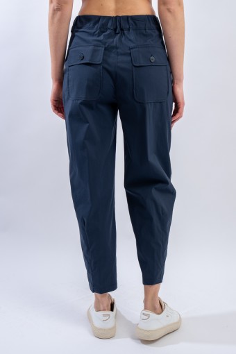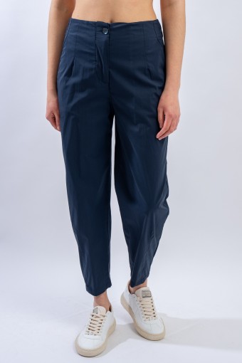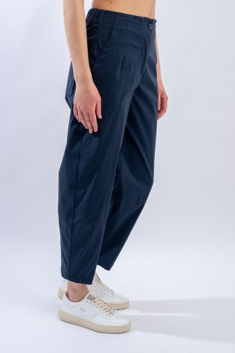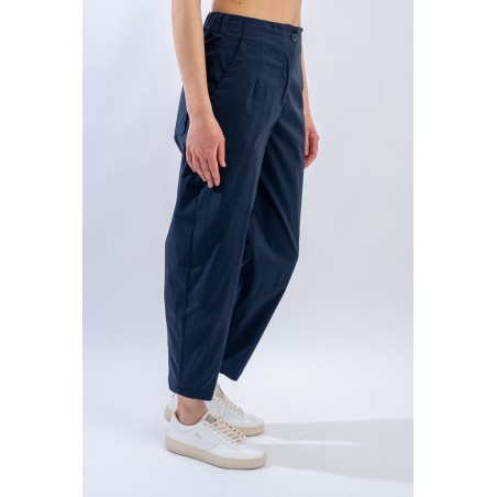 Long trousers made of a stretch cotton blend. The regular waist is perfectly adaptable thanks to the elastic inserts. The linear design, with a straight leg that slightly strains at the bottom, is enriched by the light pleats on the front that make it more elegant and refined. Versatile and with a contemporary cut, it is perfect on cool summer evenings for a contemporary and comfortable look