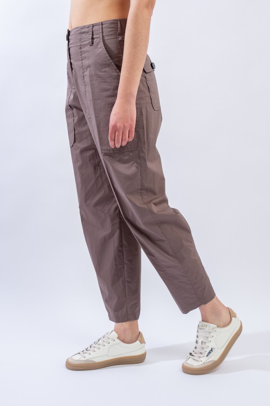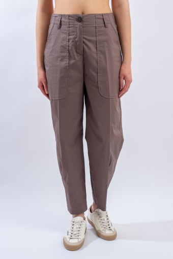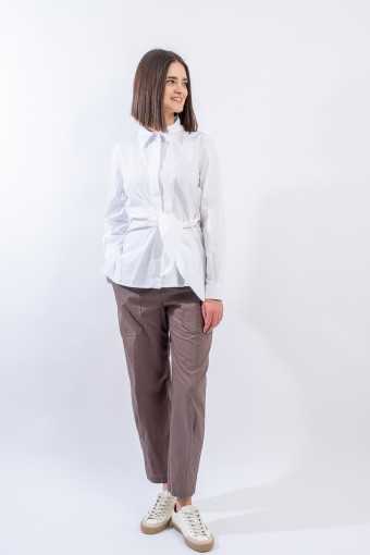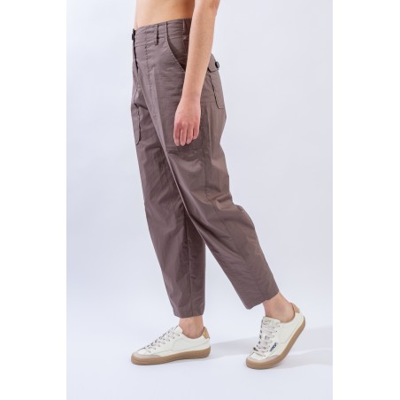 Alessia Santi trousers with a refined and elegant cut made of 100% cotton with a fresh and light look. The leg is characterized by a straight cut that narrows slightly at the bottom and by the front pockets sewn in sight. The waist in the back is elasticated, to maximize its fit. The back is enriched by the application of two bellows pockets closed with button and flap. Ideal for a contemporary and effective look, at the same time practical, utility-inspired.