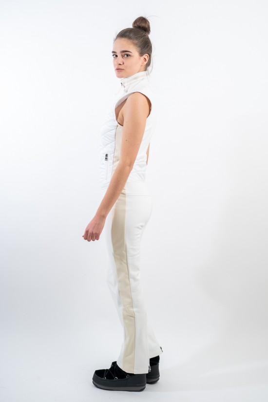 Carys Pants is the overalls of BOGNER made to enhance the female figure. Made of stretch fabric at the bottom, it is padded with soft cotton wool at the top to provide optimal comfort and warmth. The high ribbed neck provides an additional feeling of pleasantness to the touch. Rich in details, unique in its kind, it is also the right garment for aprè ski. Unparalleled fit. Comfort and performance without compromise!