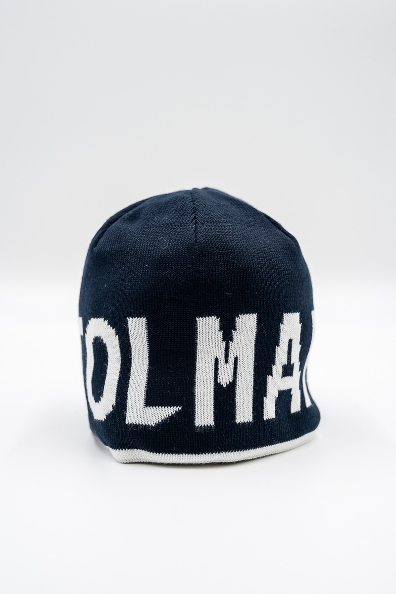 Berretto reversibile lato 1 con maxi logo in contrasto di colore, lato 2 monocromatico e pulito.